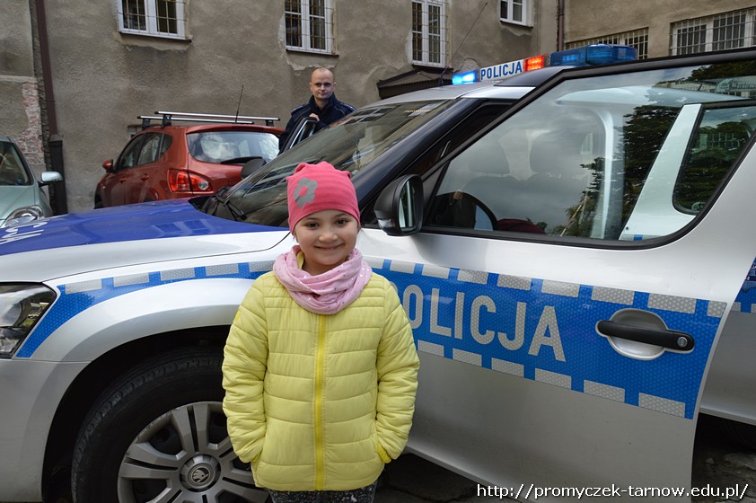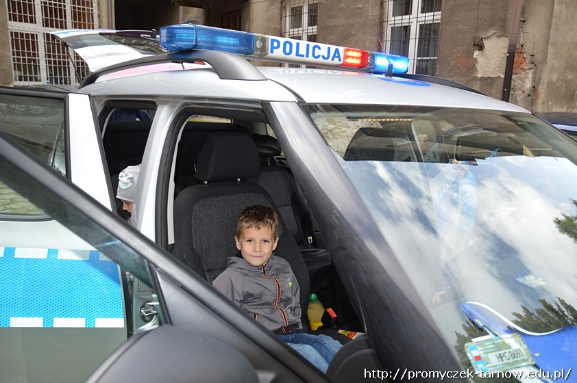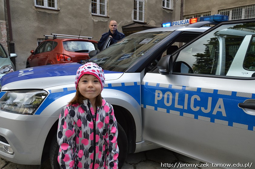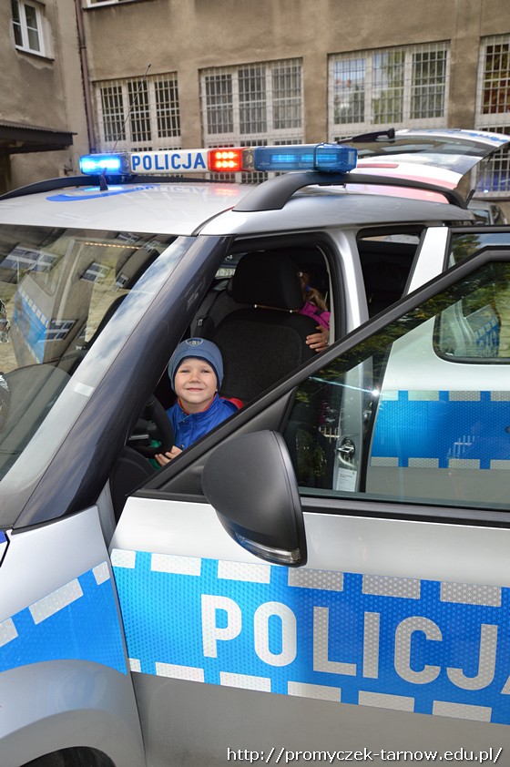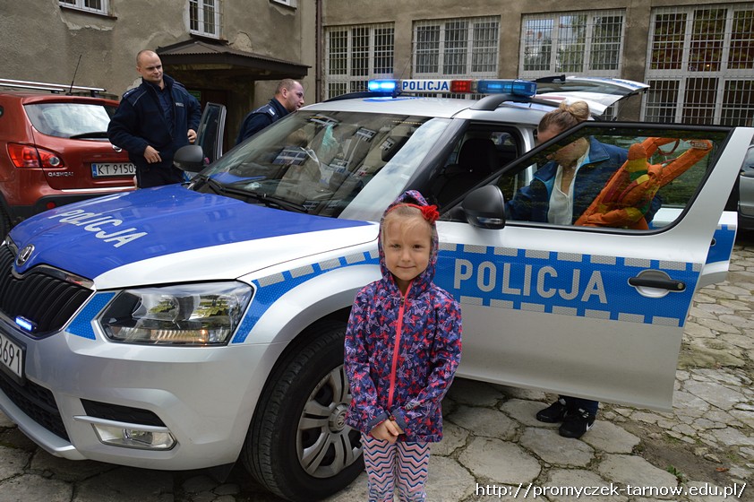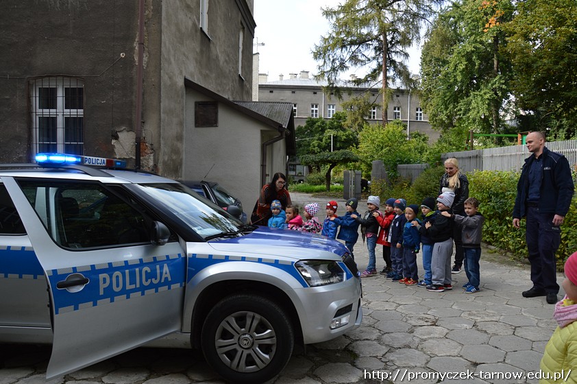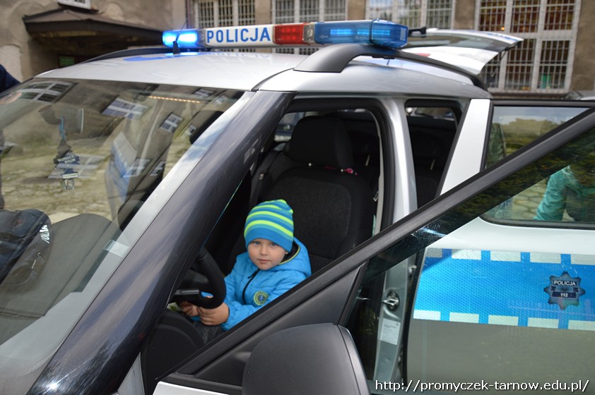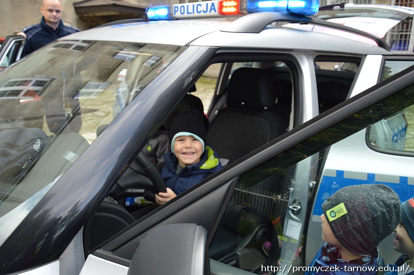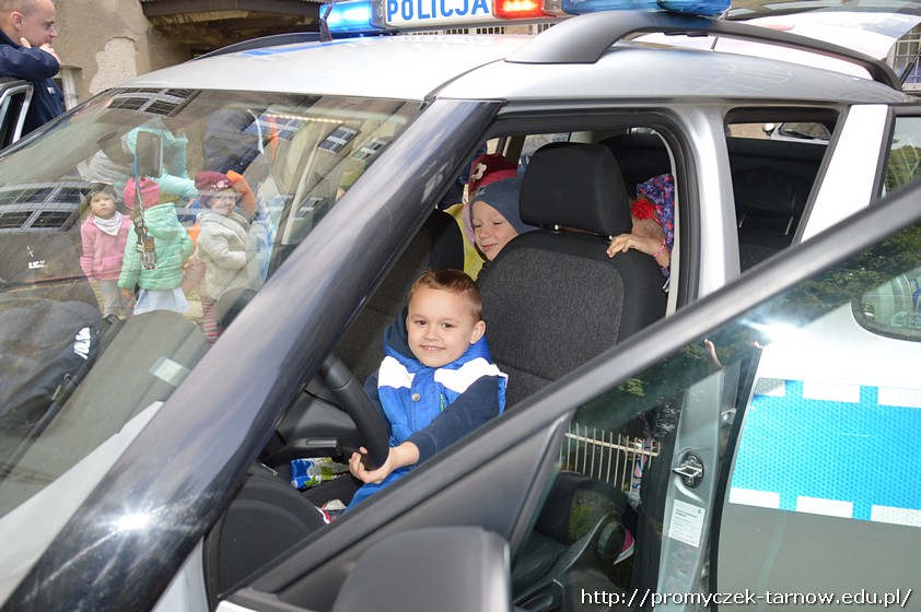 Przedszkolaki poznały umundurowanie policjanta, jego atrybuty, określały zadania, jakie podejmuje. W związku z tym, że panowie policjanci przyjechali do nas radiowozem, dzieci mogły zobaczyć jak z bliska wygląda ten pojazd. Co odważniejsi usiedli nawet za kierownicą.