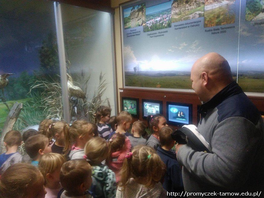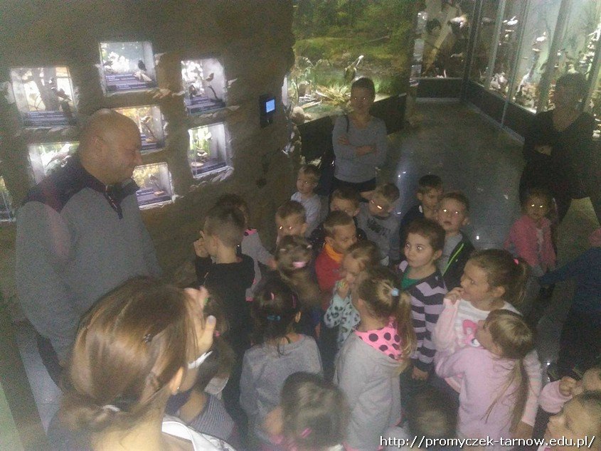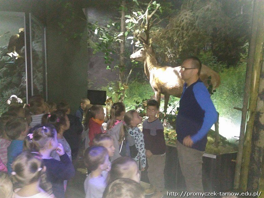 W muzeum dzieci zostały przywitane przez dwóch bardzo sympatycznych panów przewodników, którzy opowiadali niezwykłe historie na temat roślin i zwierząt żyjących na terenie Polski, a szczególnie w okolicach Tarnowa. Przedszkolaki mogły także zobaczyć zwierzęta w ich naturalnych rozmiarach np. borsuka, dzika, jelenia, żubra i niedźwiedzia., liczne ptaki i owady.