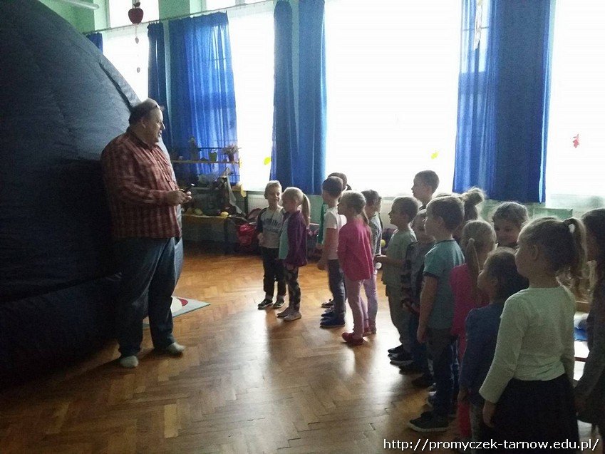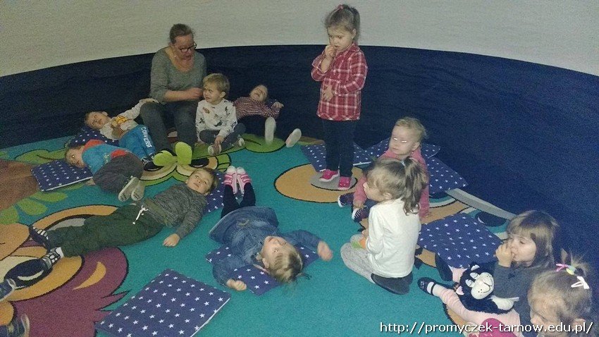 Nasze Przedszkolaki miały możliwość uczestniczenia w niezwykłym wydarzeniu – do Promyczka zawitało mobilne planetarium! Miało to miejsce w poniedziałek 20 listopada 2017 r. Dzieci były bardzo podekscytowane i nie mogły się doczekać kiedy odwiedzą planetarium. Nikt tak naprawdę nie wiedział czego może się spodziewać.