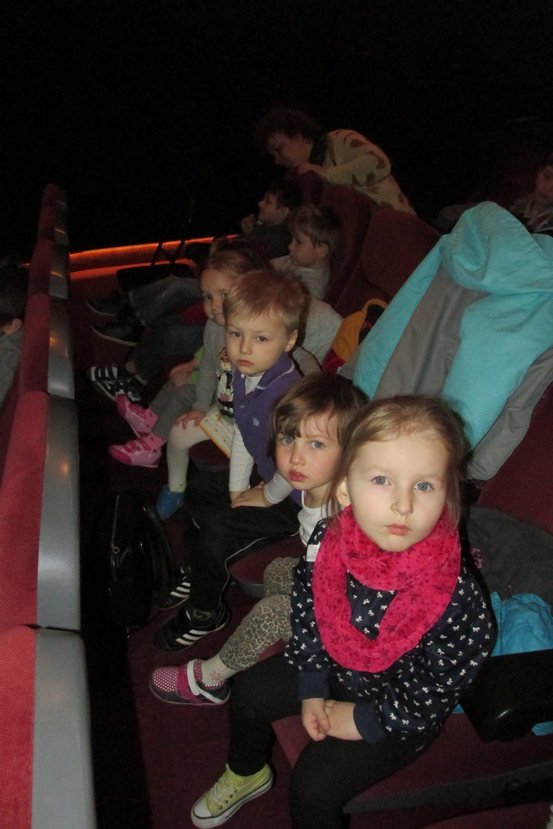 Punktualnie o 9.40 wszystkie grupy czekały na wejście na salę kinową, która tego dnia spełniała rolę sceny teatralnej. Gdy wreszcie wszyscy zajęli swoje miejsca, zgasły światła, naszym oczom ukazała się piękna scenografia i … przedstawienie się rozpoczęło!