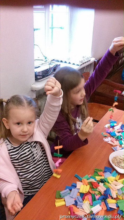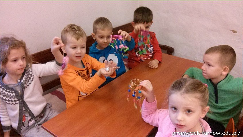 Zuchy miały możliwość wcielenia się w role kolędników, dowiedziały się także, czym dawniej ozdabiano domy w okresie świątecznym. Zapoznały się z techniką wykonywania „pająków” (łańcuchów z bibuły i słomy) i „światów” – czyli ozdób z opłatka, których zrobienie wymagało koncentracji i delikatności. Dzieci miały okazję samodzielnie wykonać te dawne dekoracje. Na szczęście wszyscy świetnie sobie poradzili, a wykonane nietypowe ozdoby każdy mógł zabrać do domu.
