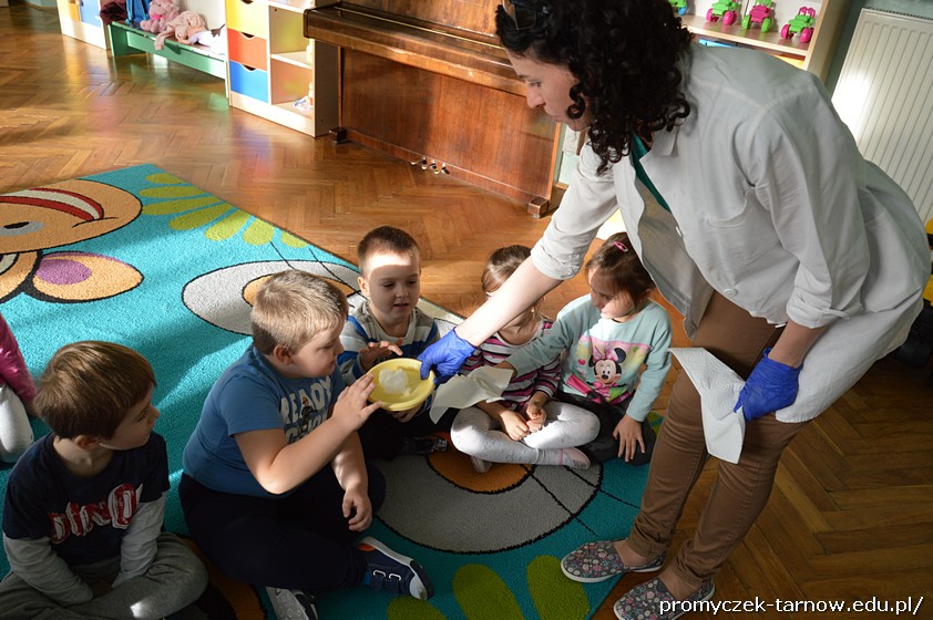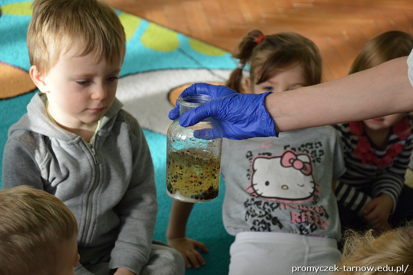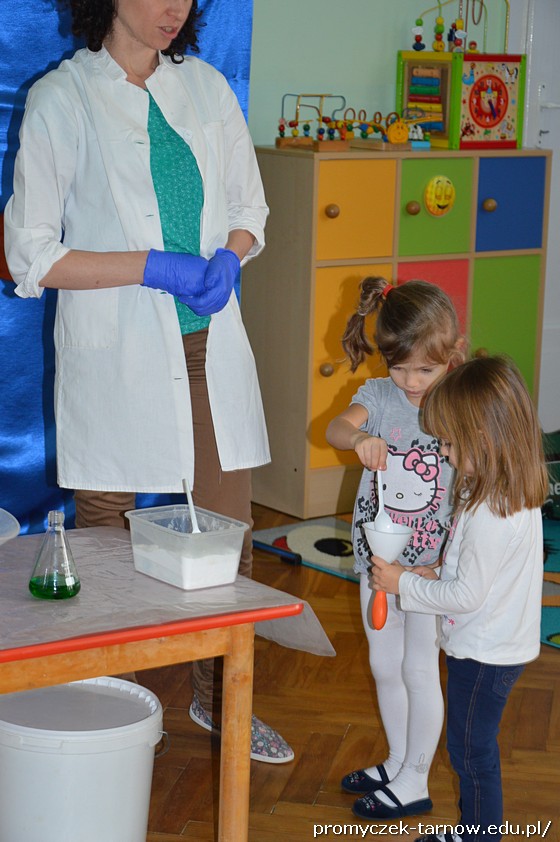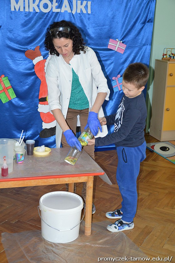 Dzieci mogły się przekonać co czego służy hydrożel i dlaczego jeszcze niedawno był im bardzo przydatny, wspólnie z panią chemik mieszały różne substancje, a także stworzyły pastę do zębów dla słonia.