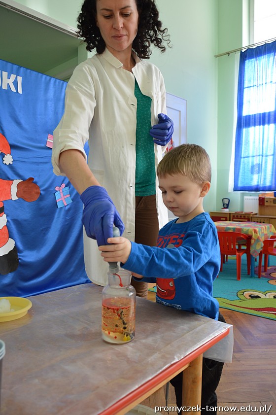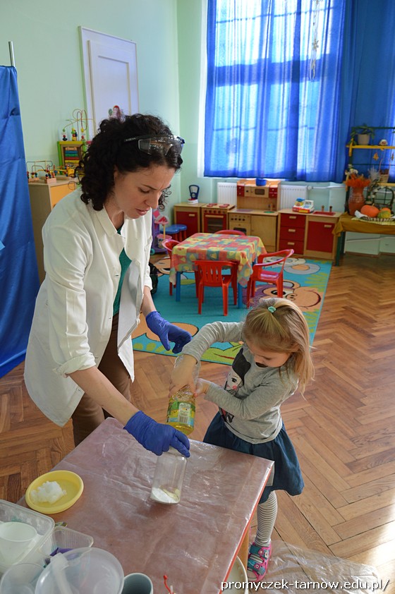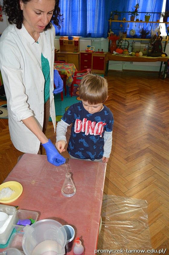 Dzieci z wypiekami na twarzy śledziły poczynania prowadzącej oraz swoich kolegów i koleżanek. Być może w którymś z naszych Promyczków zakiełkowała miłość do chemii? Czas pokaże.