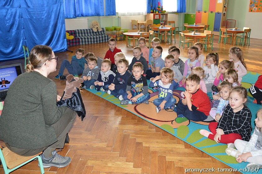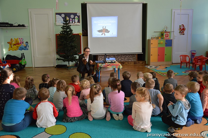W ubiegłym tygodniu do naszego przedszkola zawitała pani z Zespołu Parków Krajobrazowych Województwa Małopolskiego. Przybyła do nas , by opowiedzieć naszym przedszkolakom o nietoperzach oraz o przygotowaniu zwierząt do zimy.