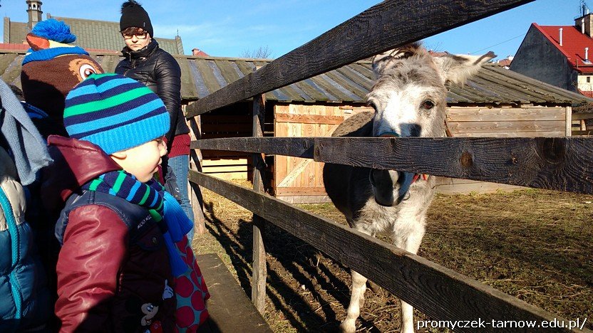 Pewnej środy wybraliśmy się wszyscy, by odwiedzić żywą szopkę Bernadrynów. Dzieci entuzjastycznie reagowały na znajdujące się tam zwierzęta – zwłaszcza przyjazny osiołek i śpiące króliczki przykuły ich uwagę.
