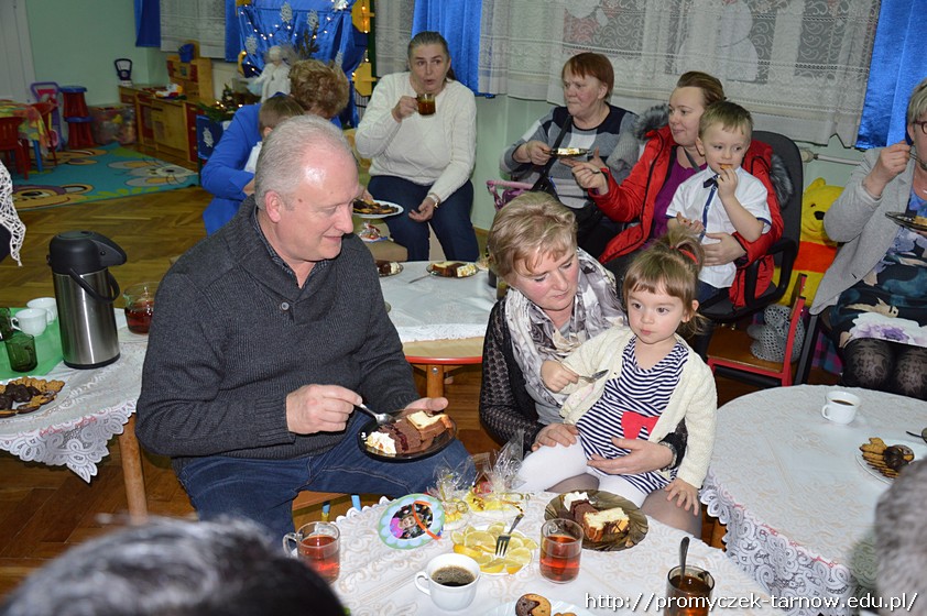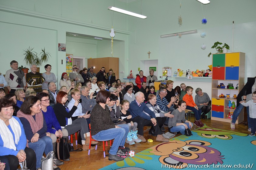 We wtorkowe przedpołudnie wszyscy zgromadzili się w sali grupy I Smyki, aby podziwiać występy swoich wnuków. Dzieci spisały się znakomicie - spotkanie przebiegło w atmosferze pełnej wzruszeń i radości. Na twarzach przybyłych gości malowała się duma, niekiedy w oczach pojawiały się łzy.