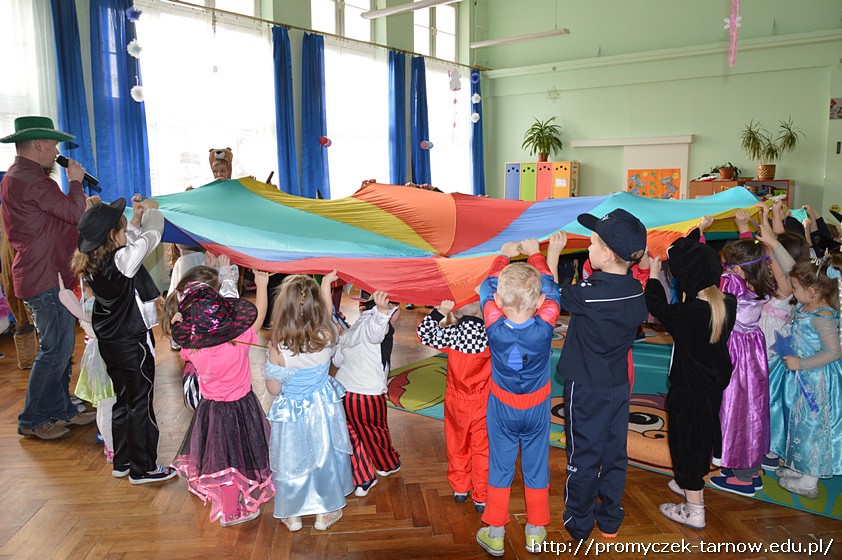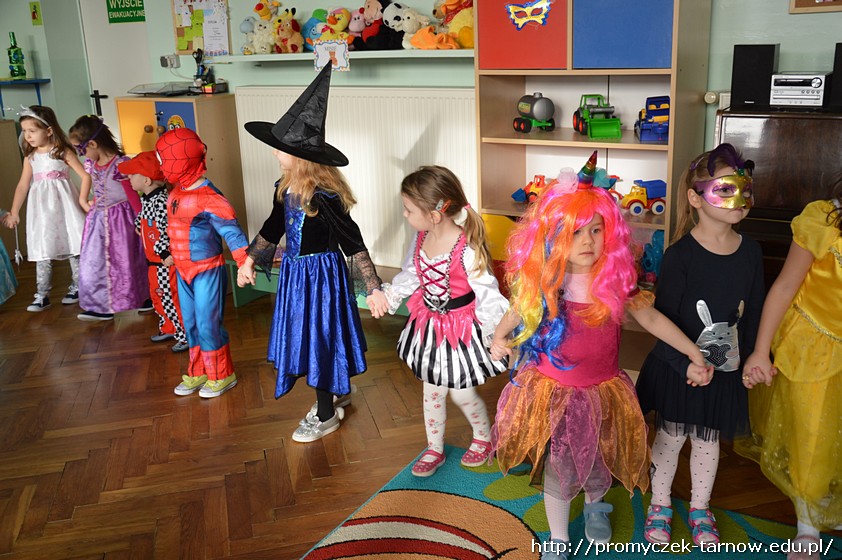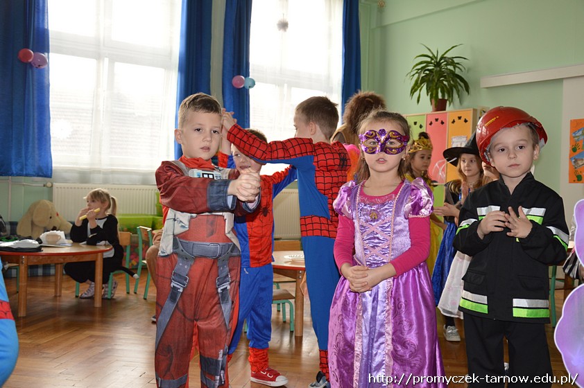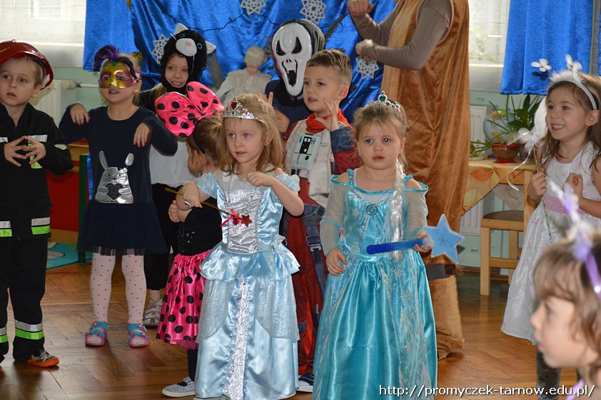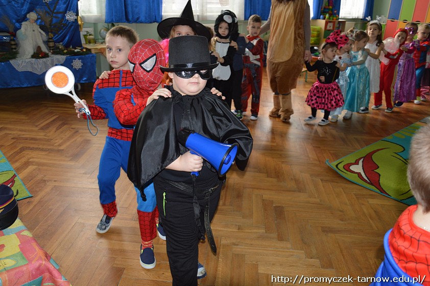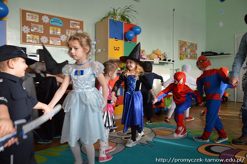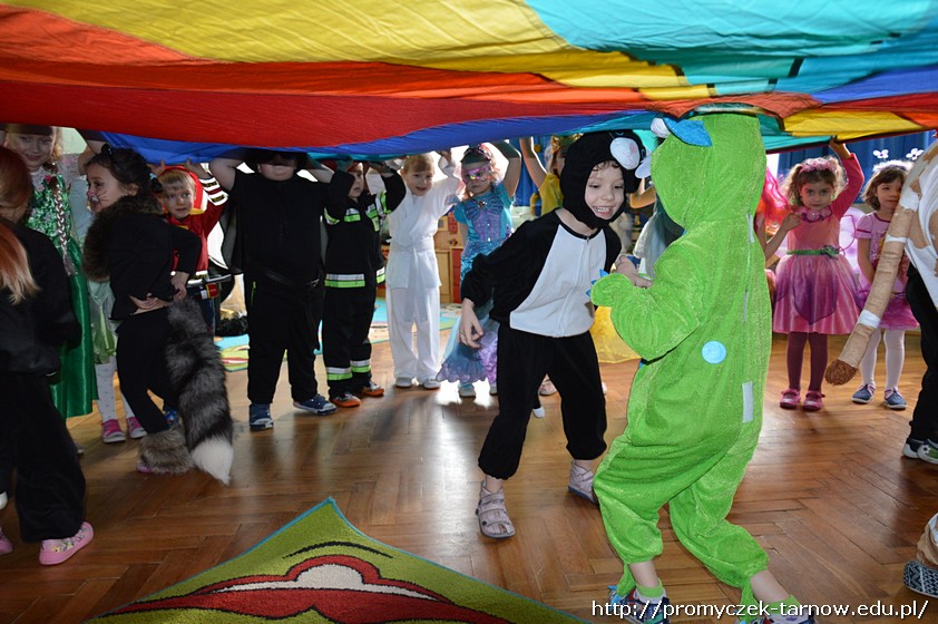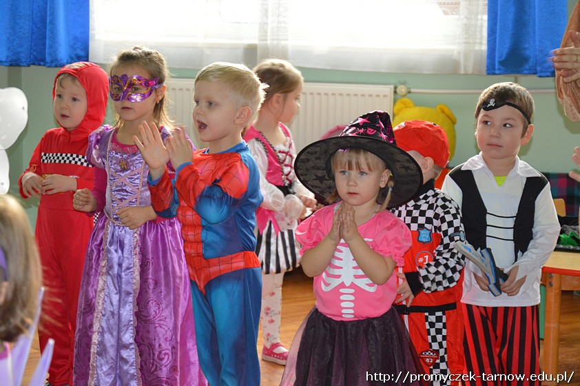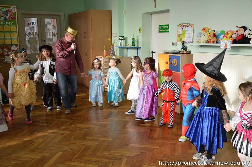 Od samego rana w „Promyczku” panowała szczególna atmosfera – salę Smyków pięknie udekorowano a dzieci prezentowały przyniesione przez rodziców stroje. Wreszcie nastąpiła wyczekiwana chwila i rozbrzmiały pierwsze takty muzyki. Wodzireje z firmy K&g przygotowali ciekawe tańce i zabawy.