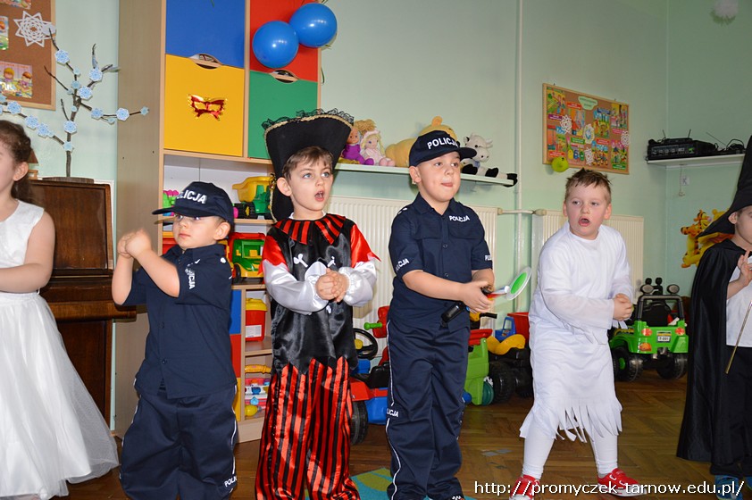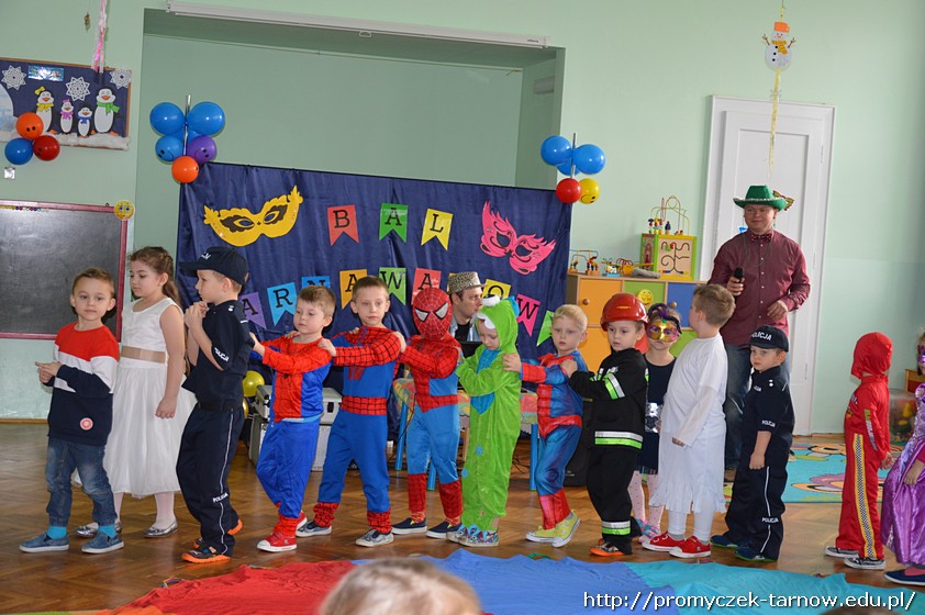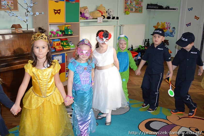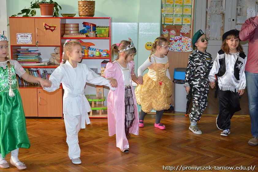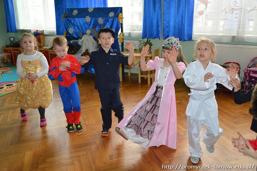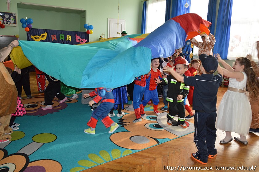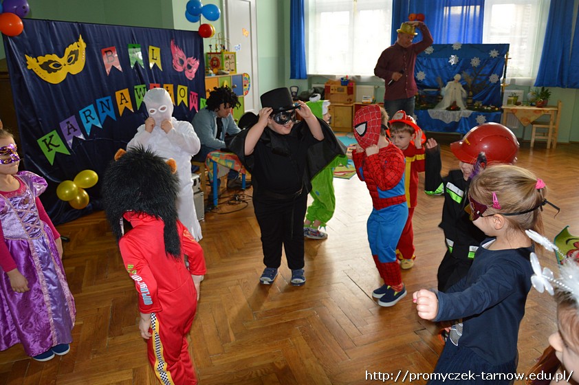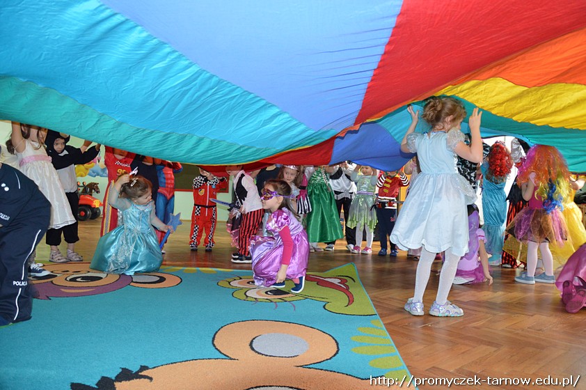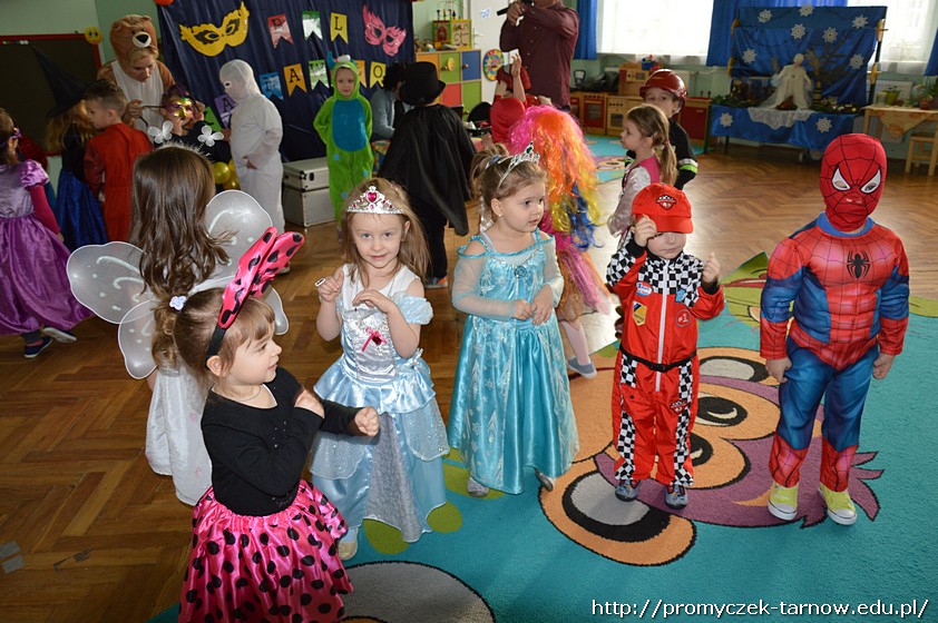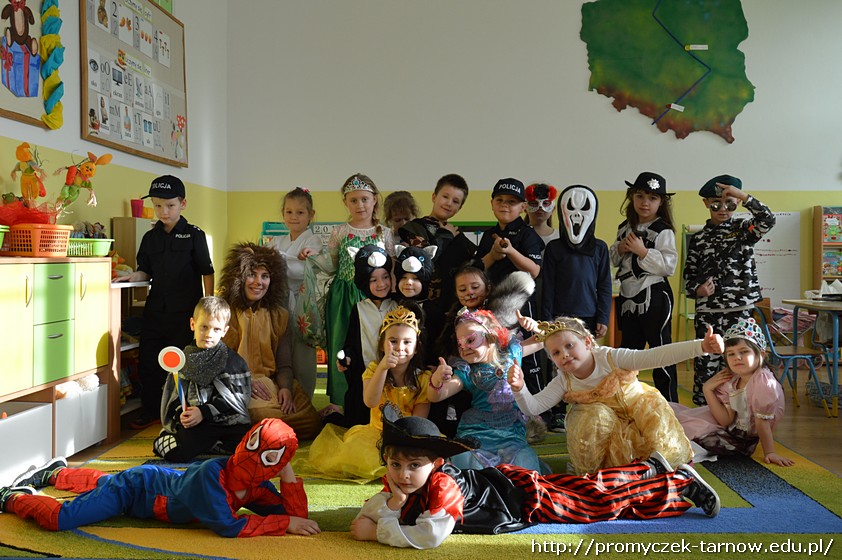 Od samego rana w „Promyczku” panowała szczególna atmosfera – salę Smyków pięknie udekorowano a dzieci prezentowały przyniesione przez rodziców stroje. Wreszcie nastąpiła wyczekiwana chwila i rozbrzmiały pierwsze takty muzyki. Wodzireje z firmy K&g przygotowali ciekawe tańce i zabawy.