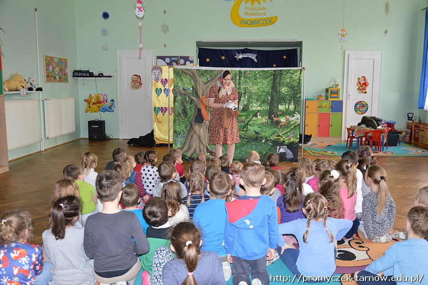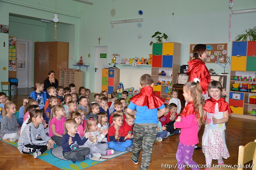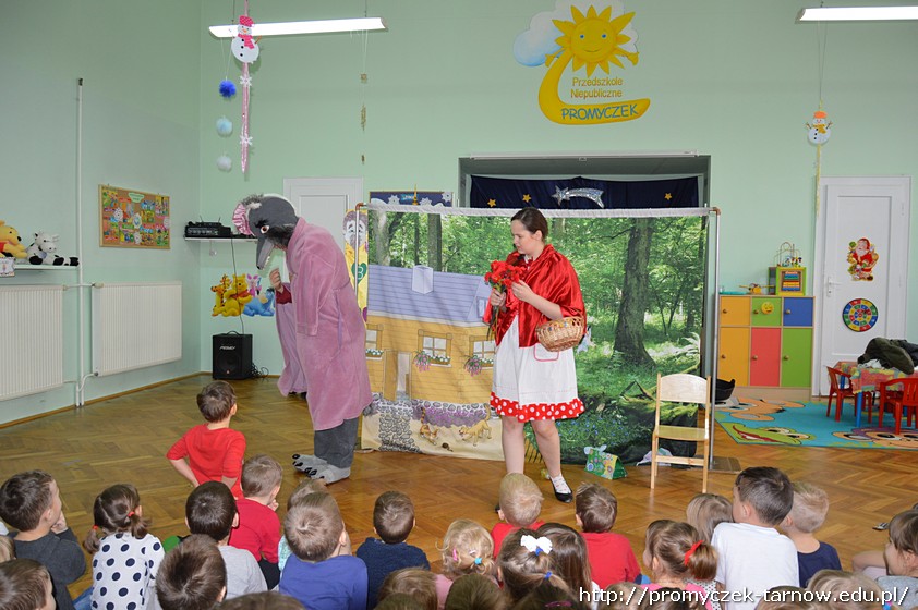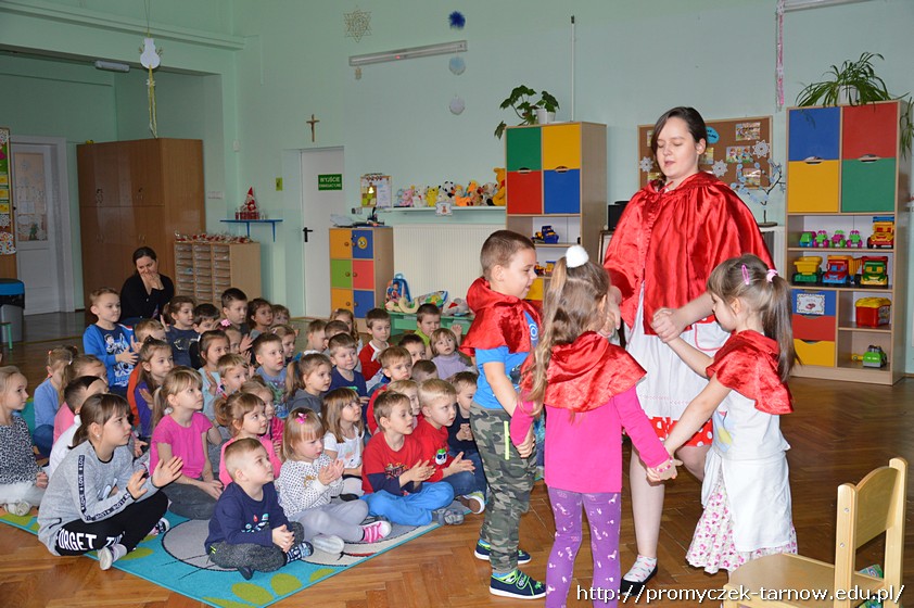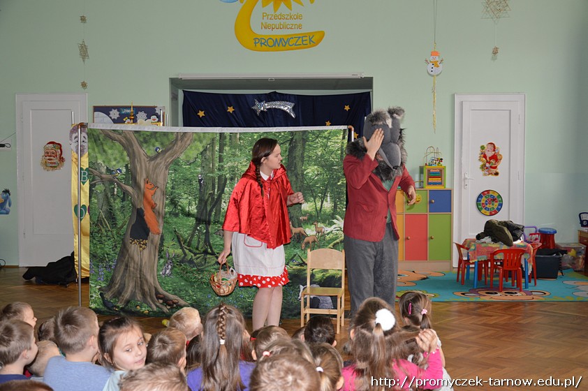 Dnia 16 stycznia 2018 roku dzieci z naszego przedszkola miały okazję oglądnąć bajkę pt. „Czerwony Kapturek”. Przedstawienie było przygotowane na podstawie bajki Charles’a Perrault’a. Łatwowierny Kapturek zdradza przebiegłemu wilkowi drogę do domku babci. Okazuje się jednak, że sprytnego wilka nie da się przechytrzyć. Kapturkowi na pomoc przychodzi leśniczy.