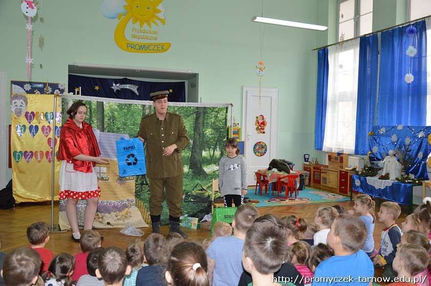 Oprócz znanej dzieciom historii, przedstawienie nauczyło je wielu postaw proekologicznych. Kapturek przypomniał o obowiązku segregowania śmieci, z zaznaczeniem do których pojemników należy wrzucać papier, szkło czy odpady biodegradowalne. Główna postać bardzo mocno zaznaczyła, że las to mieszkanie dla wielu zwierząt i roślin i dlatego człowiek musi o niego dbać i przenigdy nie może wyrzucać tam papierków i innych odpadów.