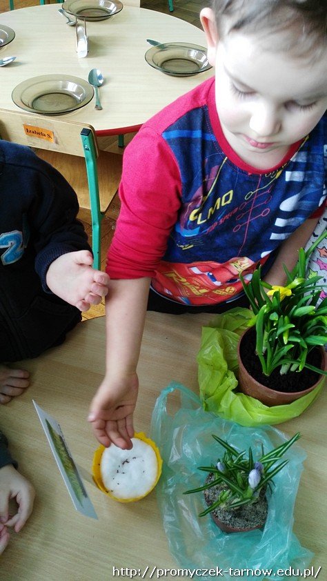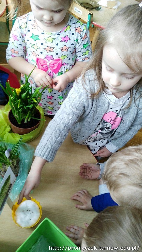 Po udanych zakupach, każdy mógł już w sali zasiać rzeżuchę, posadzić cebulkę, a nawet przesadzić żonkile i krokusy do większych donic. Ponadto kącik przyrodniczy ozdobiły także bazie oraz inne kwiaty na których wzrost Smyki oczekują z niecierpliwością.