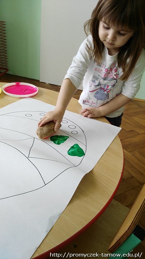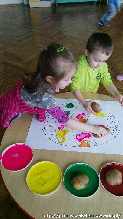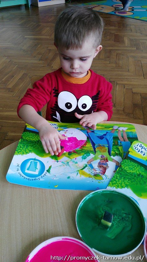 Wykorzystując mroźne przedpołudnia Smyki eksperymentowały z bibułą, farbami, gąbkami, a nawet i ziemniaczanymi stempelkami wdrażając się przy tym do zachowywania porządku na swoim stanowisku pracy.