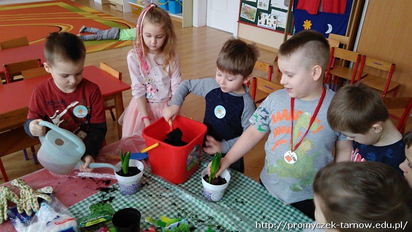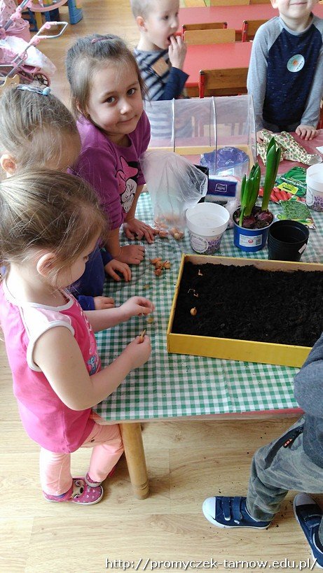 Wiosna w kalendarzu, a więc czas na wielkie sadzenie i sianie różnych roślinek w kącikach przyrodniczych. Dzieci z grupy Asy także bawiły się w małych ogrodników i wraz z Panią zadbały, aby ich kącik był zielony i pachnący. Samodzielnie zasiali owies, pszenicę, rzeżuchę i rzodkiewkę oraz zasadzili cebulkę i fasolę.