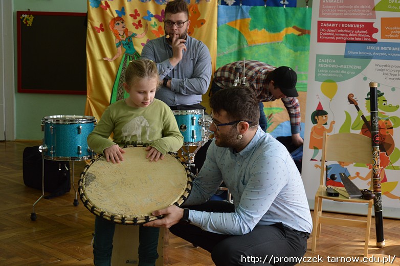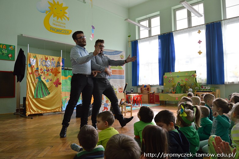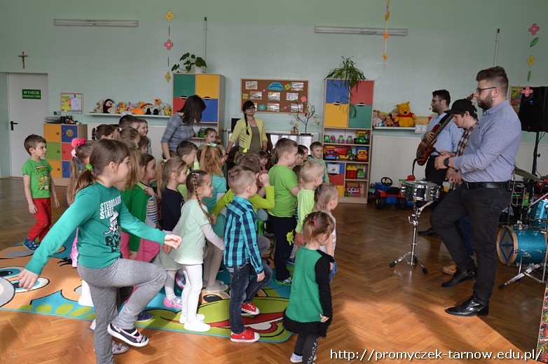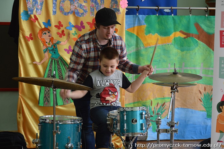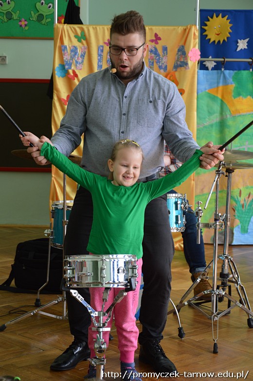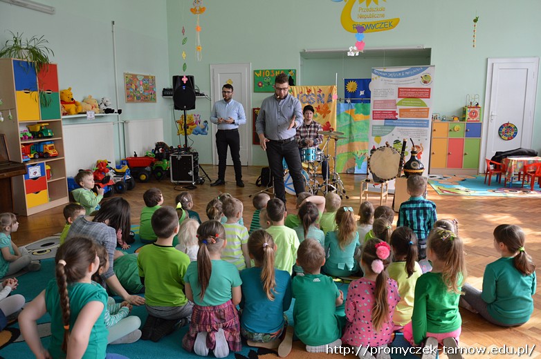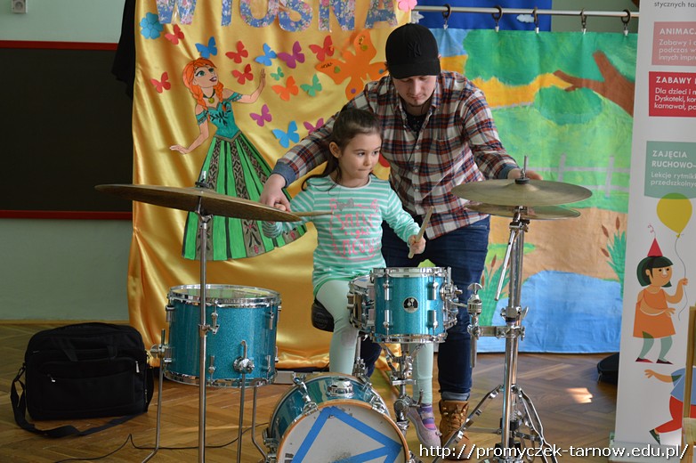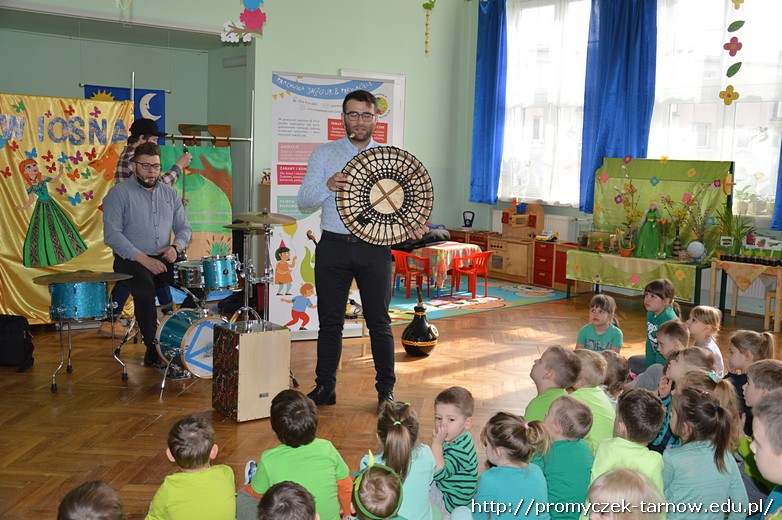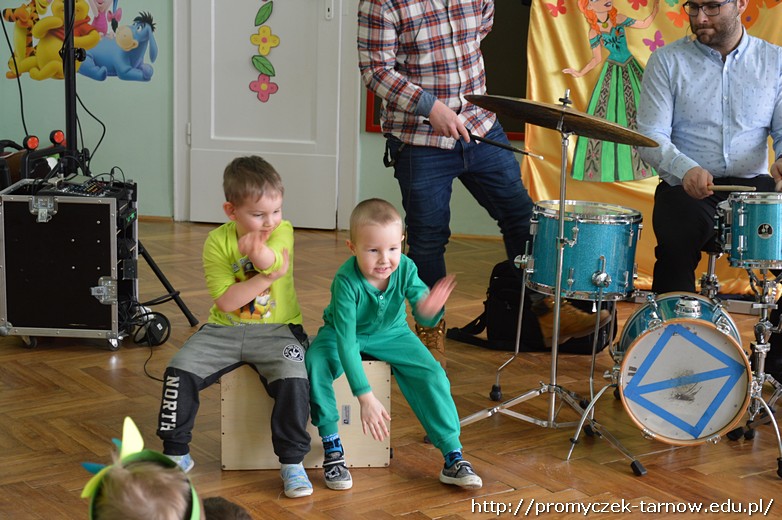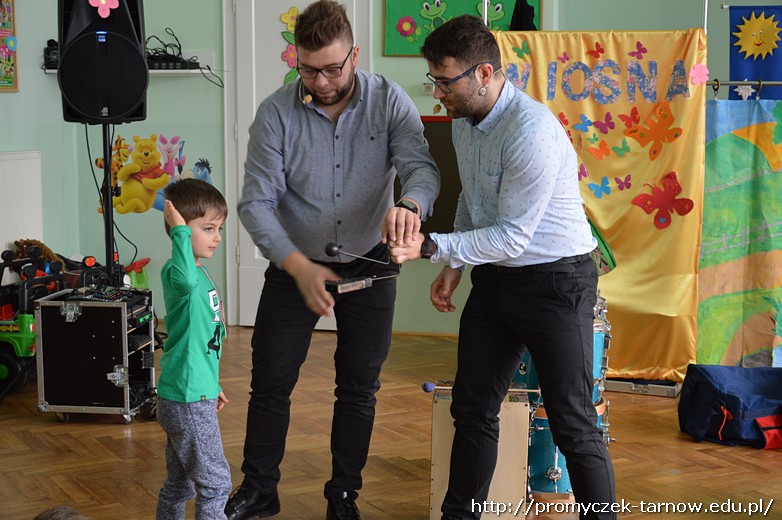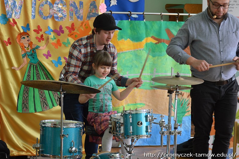 Drugiego dnia odbyło się uroczyste Powitanie Wiosny z udziałem zaprzyjaźnionego zespołu Jaszczur i Przyjaciele, podczas którego dzieci brały udział w zabawach ruchowych w rytm muzyki a także poznawały nowe instrumenty.