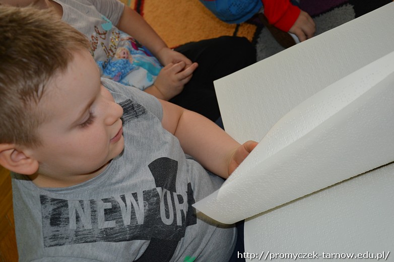 Dzięki niezwykłym okularom dzieci mogły spojrzeć na świat tak jak osoby mające problemy ze wzrokiem. Ponadto przedszkolaki dowiedziały się trudnościach jakie czekają w życiu codziennym na osoby niepełnosprawne. Co więcej Promyczki mogły posłuchać fragmentu audiobooka, dotknąć stronnic książki pisanej Brajlem, a także wczytać się w specjalną, wypukłą mapę Tarnowa.
