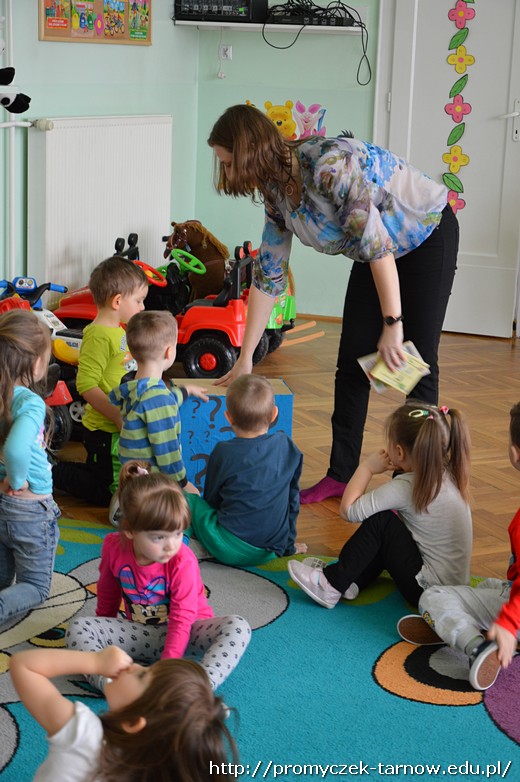 Pierwsze dni wiosny były dla dzieci z grupy Smyków i Asów, dniami nie tylko spędzonymi na poznawaniu walorów ciepłych promieni wiosennego słońca. Bowiem w nawiązaniu do Międzynarodowego Dnia Inwalidów i Ludzi Niepełnosprawnych młodsze grupy spotkały się z panią Martą Bardeli - mamą jednego z przedszkolaków, która pracuje w Filii nr 12 Miejskiej Biblioteki Publicznej, w której działa jedyny w Tarnowie punkt wypożyczeń kaset książki mówionej i audiobooków.