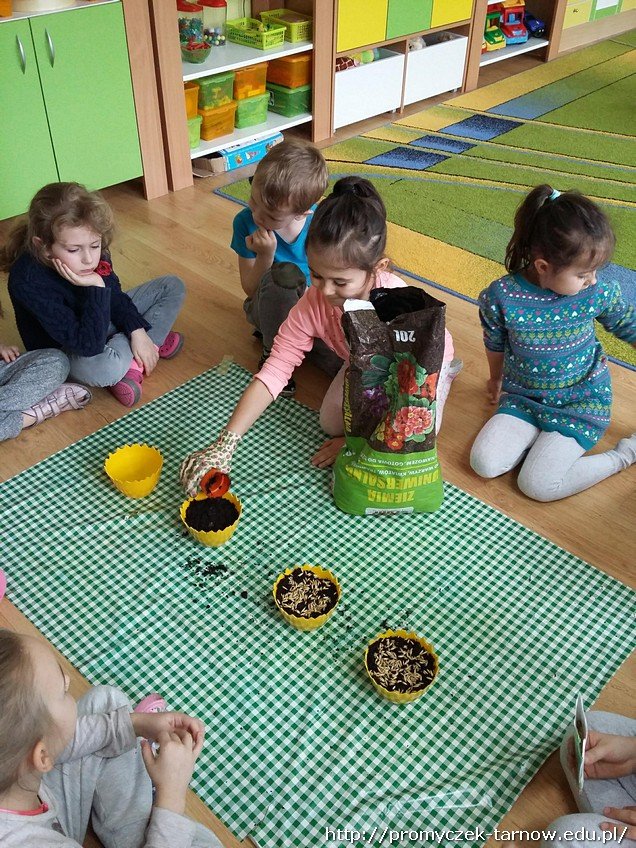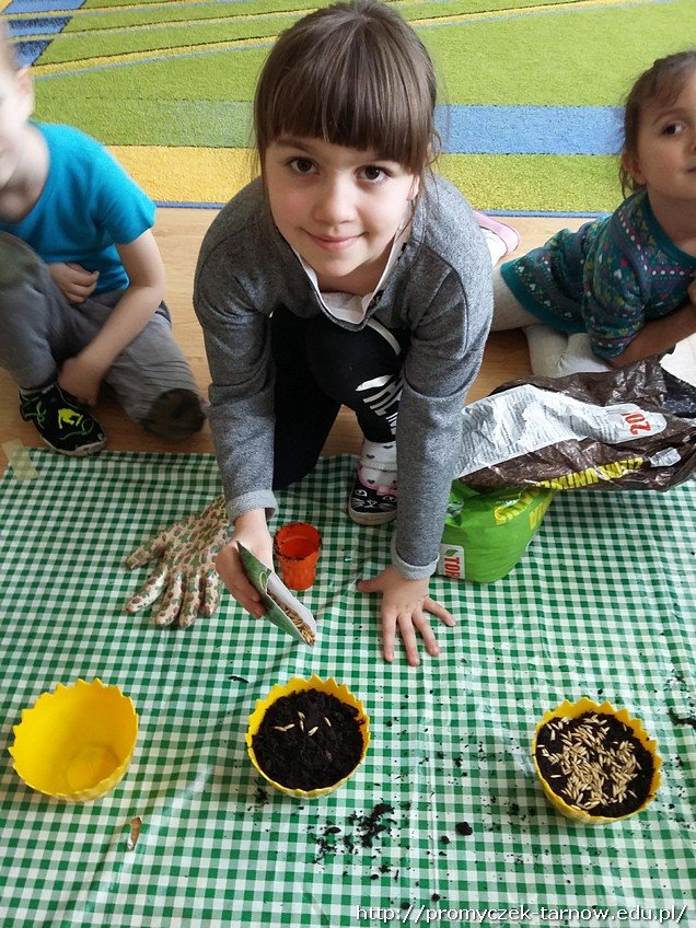 Do tej pory w przedszkolnym kąciku przyrodniczym udało się posadzić cebulę, owies, szczypiorek, tymianek, bazylię, maciejkę oraz groch. Już wkrótce prace ogrodnicze przeniosą się do ogrodu obok przedszkola. Zuchy nie mogą się już doczekać.