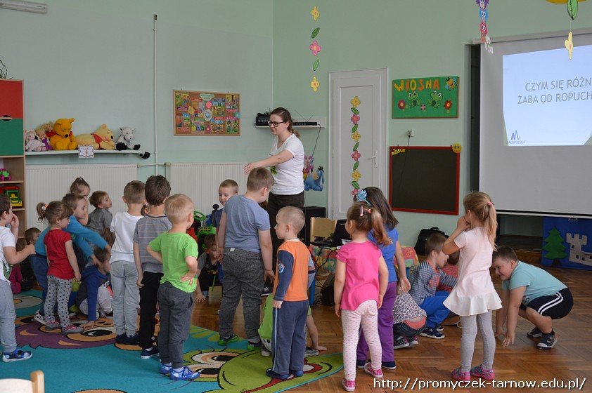 Zielony mieszkaniec stawów i łąk okazał się niezwykle ciekawym stworzeniem, o którym tak naprawdę wiemy bardzo niewiele. Oprócz części teoretycznej spotkania, dzieci wzięły udział w części zabawowo-ruchowej, a na zakończenie obejrzały krótki film animowany o głównej bohaterce zajęć, czyli Żabie Balbinie.
