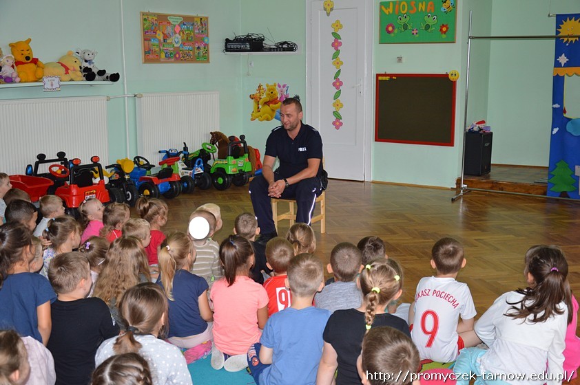 W ubiegły czwartek odwiedził naszych przedszkolaków pan sierż. sztab. Michał Szatko. Jest to pan dzielnicowy współpracujący z naszym przedszkolem. Celem tego spotkania było przybliżenie dzieciom tematyki bezpieczeństwa podczas wakacji.