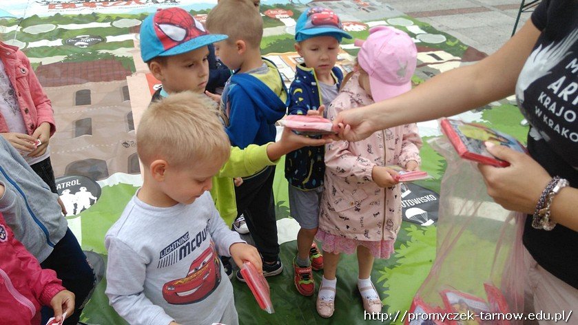 Nasi wyjątkowi goście poinstruowali wszystkich przedszkolaków jak bezpiecznie spędzić wakacje. Zademonstrowali m. in. jak bezpiecznie przechodzić przez pasy drogowe i na jakim świetle powinni przez nie przejść, zaśpiewali z naszymi przedszkolakami piosenkę o sygnalizatorze świetlnym, podarowali im kolorowanki a na zakończenie spotkania wręczyli każdemu dziecku odblaski, które zwiększają widoczność naszych mały pieszych na drodze.