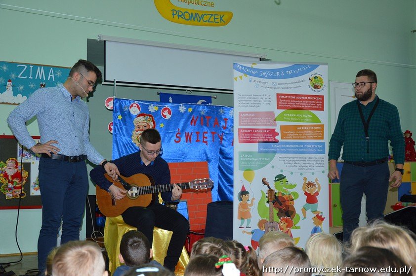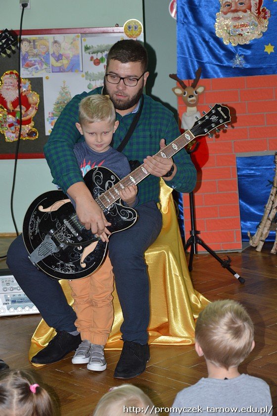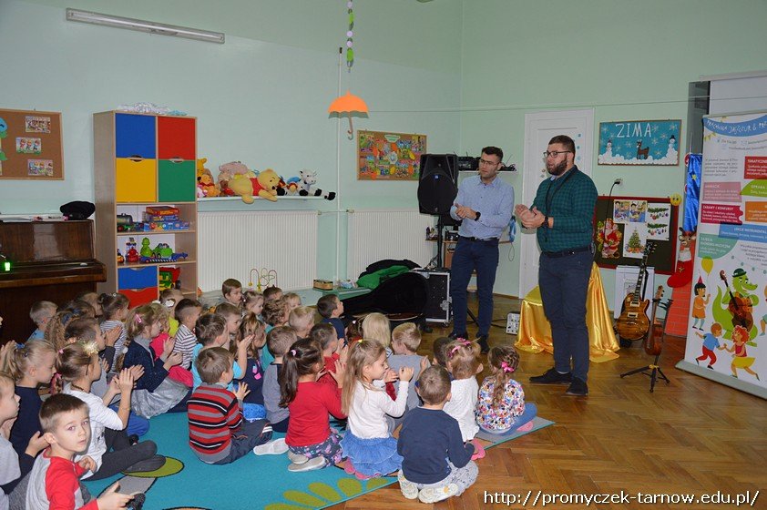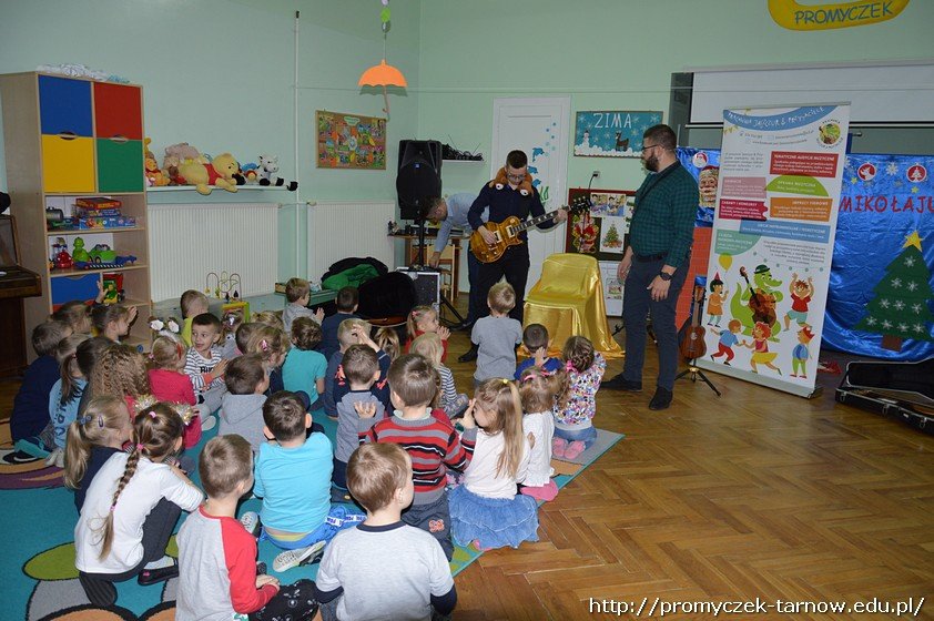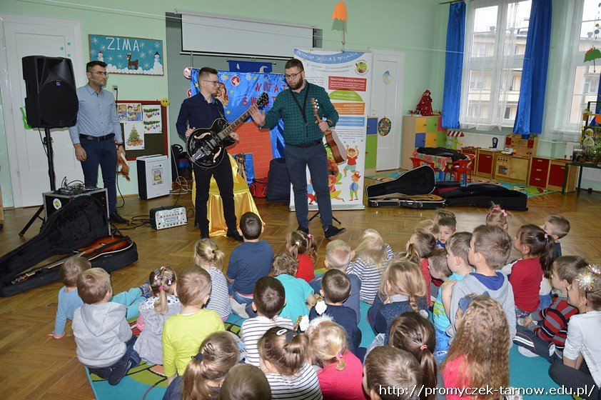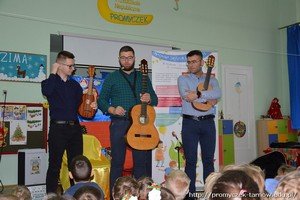 Podczas audycji muzycznej przedszkolaki mogły zobaczyć z bliska instrumenty takie jak gitara klasyczna, elektryczna, guitalele, ukulele, poznały ich budowę i sposób, w jaki gra się na tych instrumentach. Niektórzy mieli nawet okazję samodzielnie spróbować gry!