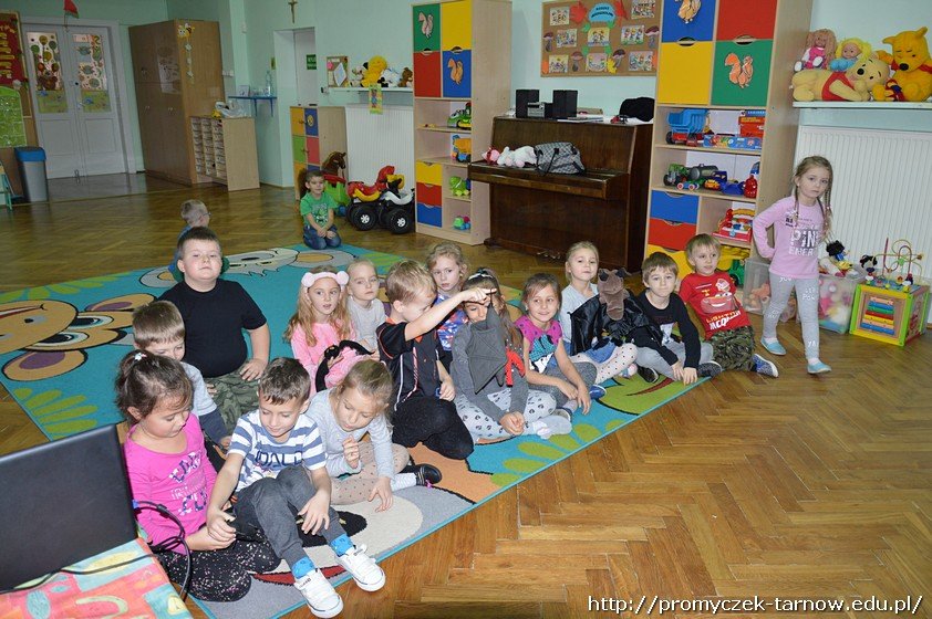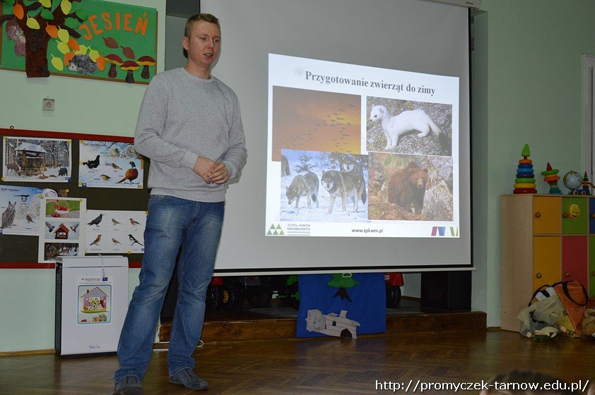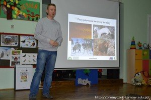 W ramach współpracy z LOP i Zespołem Parków Krajobrazowych Województwa Małopolskiego dzieci brały udział w prelekcji na temat „Jak zwierzęta przygotowują się do zimy?”.