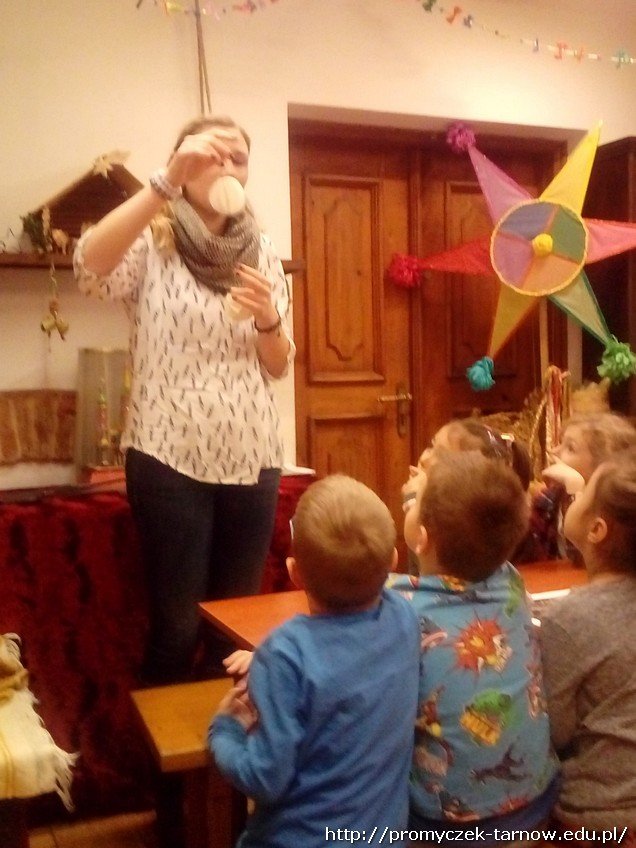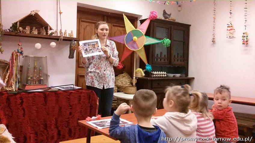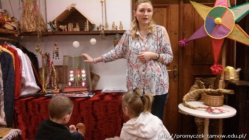 Dzieci zostały zapoznane z dawnymi zwyczajami bożonarodzeniowymi - dowiedziały się, czego sobie dawniej życzono, kto kolędował z turoniem, jak wykonywano opłatki, oraz czym były podłaźniczki i jak je przystrajano. Oglądały też różne rodzaje szopek. Najbardziej podobały się dzieciom stroje dawnych kolędników, które z wielką ochotą przymierzali.