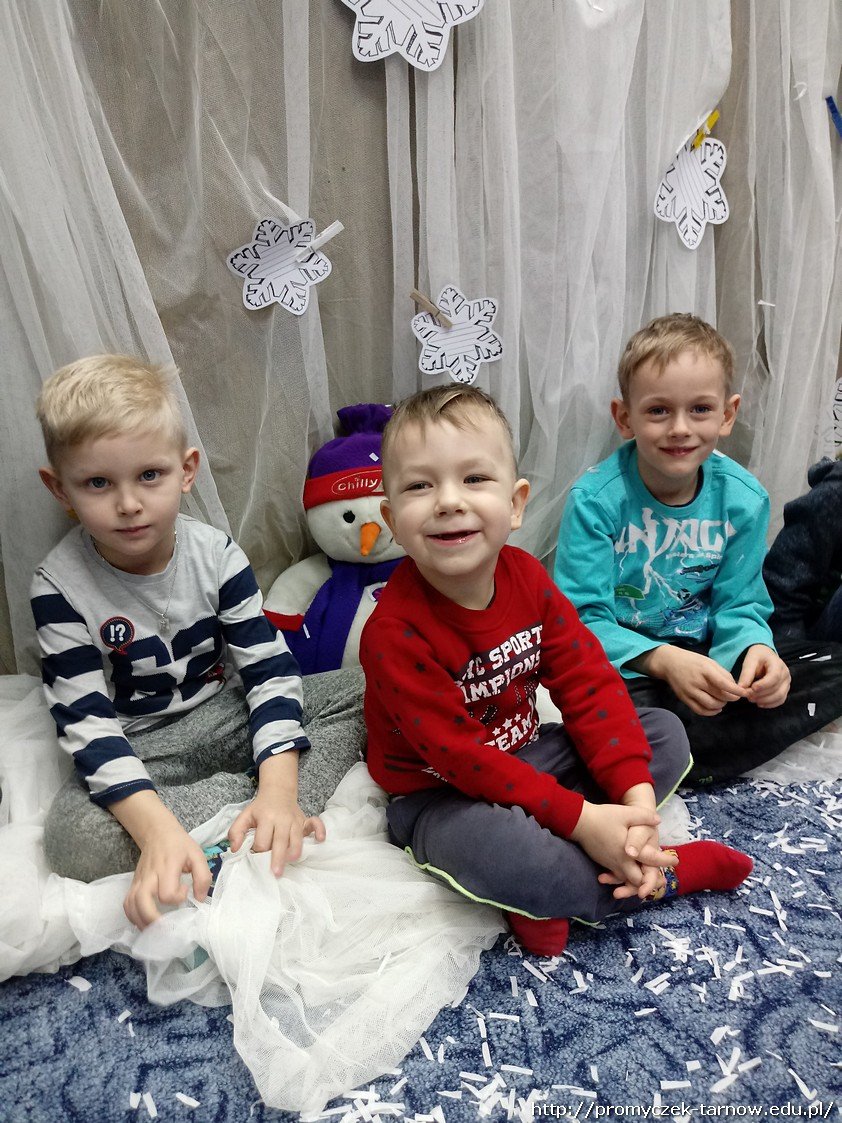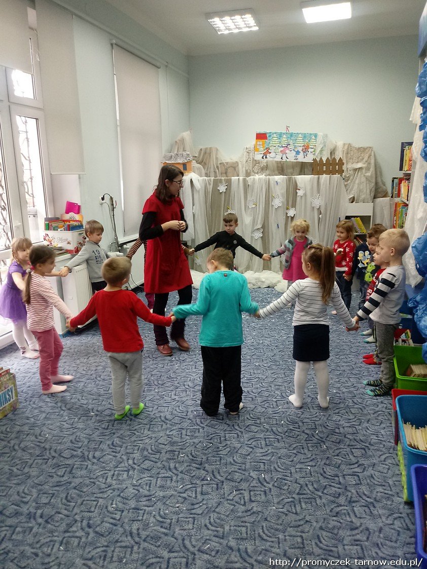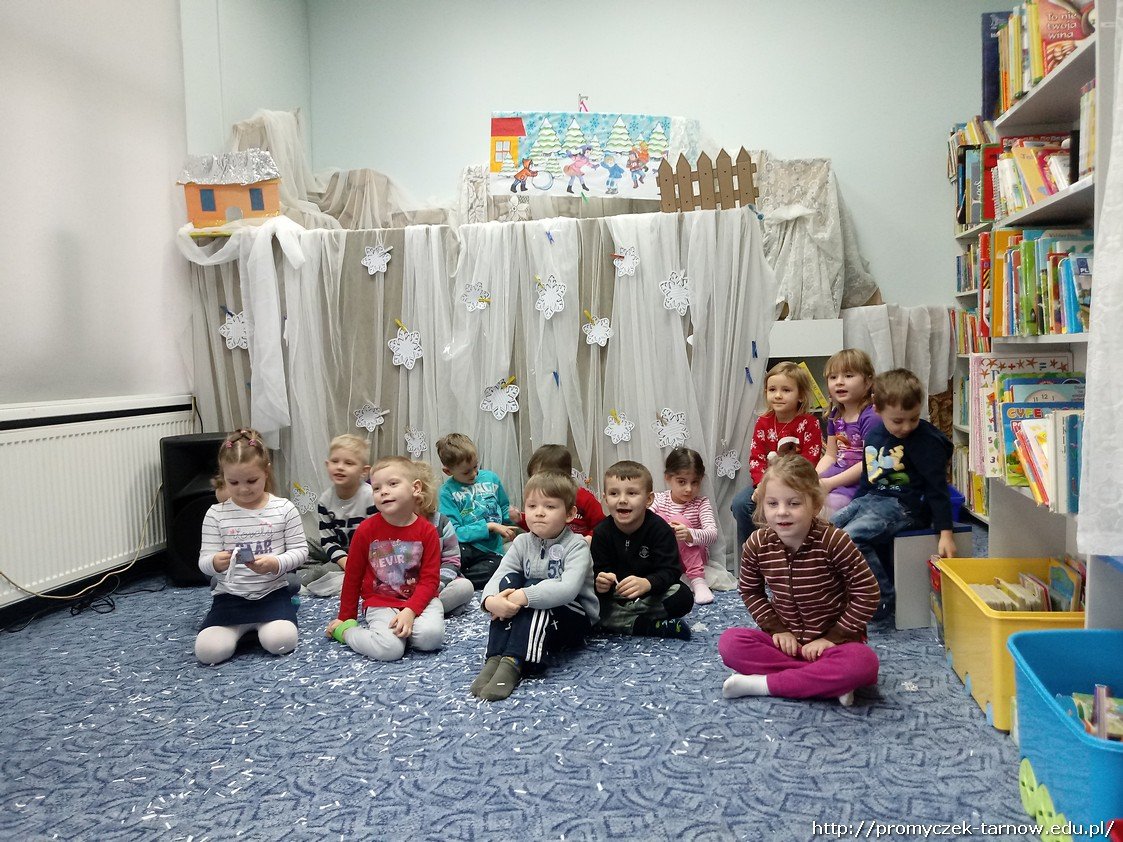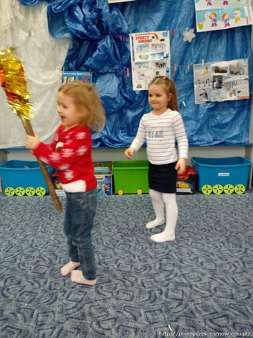 Na wstępie dzieci z wielką uwagą obejrzały teatrzyk kukiełkowy pt. „Zima Misia Uszatka”. Największą atrakcję wzbudziło zakończenie teatrzyku, w którym sypał „śnieg”. Dzieci miały możliwość spotkania z Turoniem, który pomimo dość strasznego wyglądu nie przestraszył ich i śmiało podchodzili przyjrzeć mu się z bliska.
