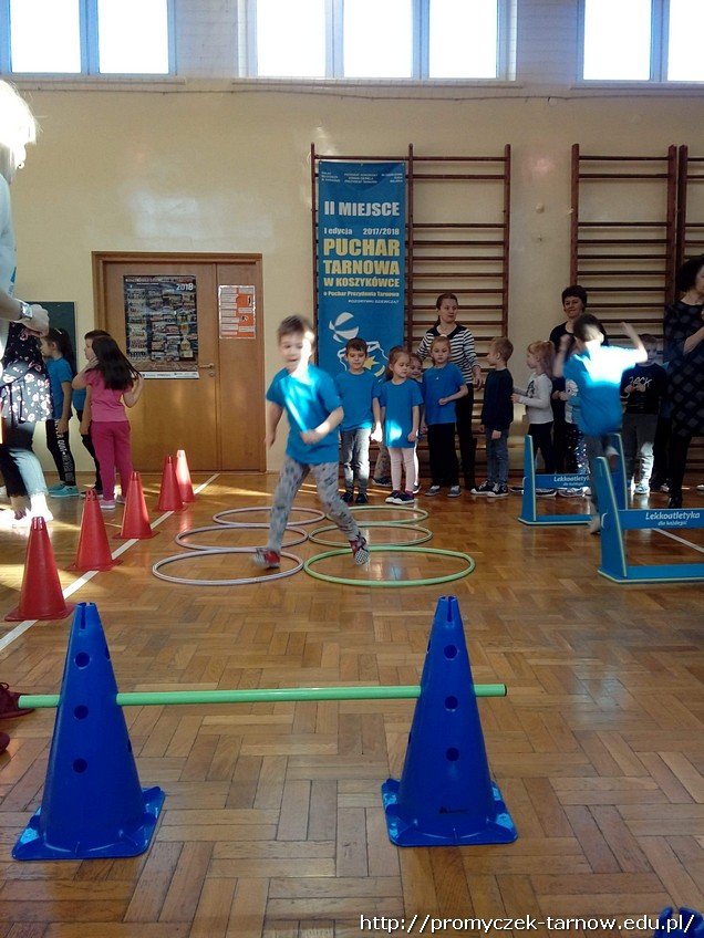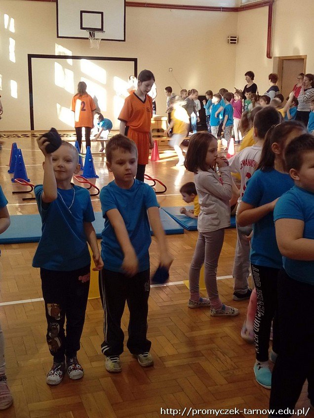 Zawody rozpoczęły się występem naszej absolwentki Zuzanny W.. Następnie nauczyciele ze szkoły podzielili nasza grupę na drużyny. Każda drużyna miała do wykonanie jakieś zadanie np. rzut do celu, skok prze ławkę, bieg slalomem.