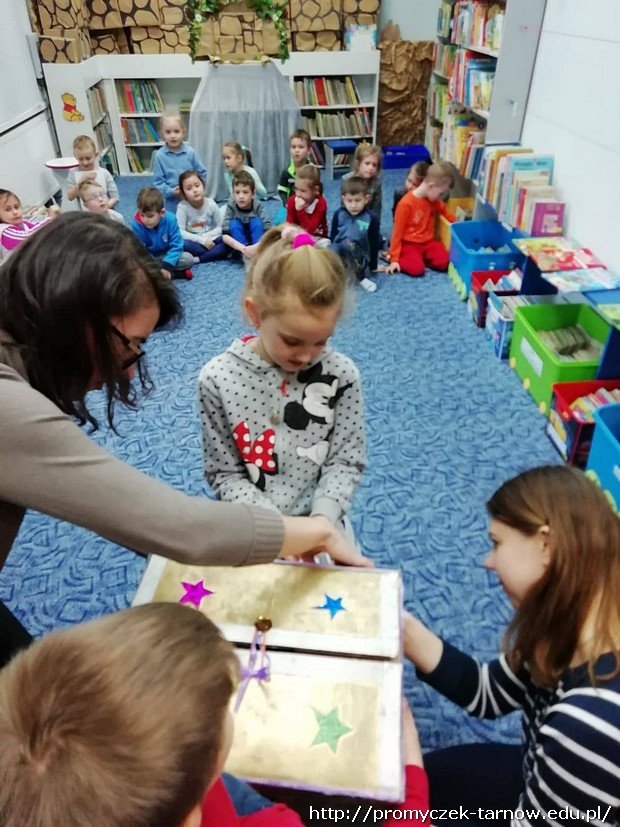 W nagrodę za poświęcenie i zaangażowanie Panie bibliotekarki zaprosiły Zuchy do wysłuchania i obejrzenia bajki "Trzy Świnki", która bardzo się wszystkim podobała.