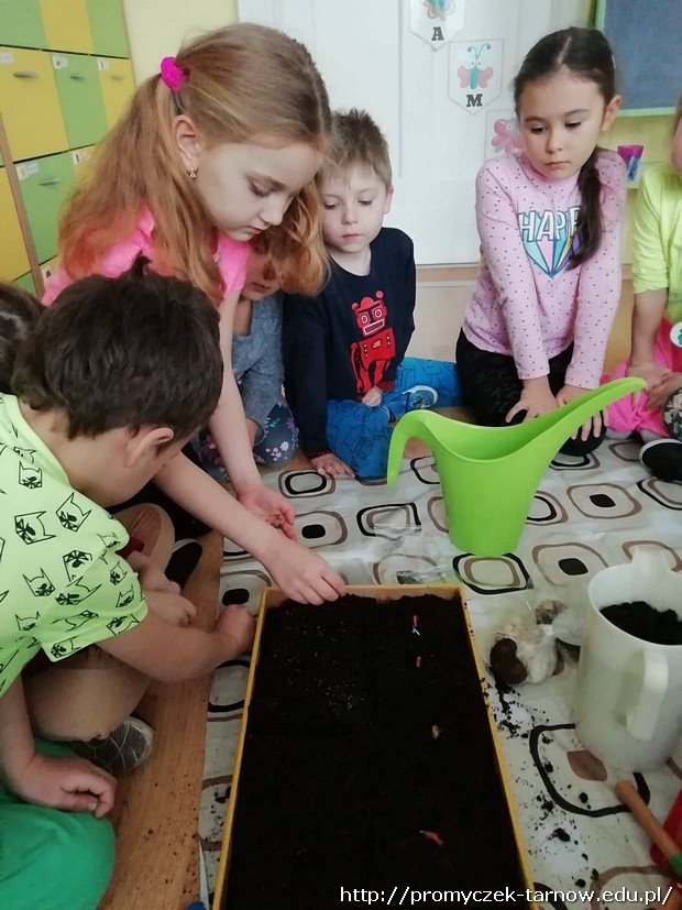 Wiosna tuż tuż, a więc należy też pomyśleć o zmianach w kąciku przyrodniczym. Zuchy zaczęły od posadzenia i posiania kilku roślinek, które za jakiś czas na pewno pięknie się zazielenią. Przy okazji tych czynności dzieci przypomniały sobie kilka najważniejszych rzeczy na temat życia roślin oraz poznały sposoby ich pielęgnowania.