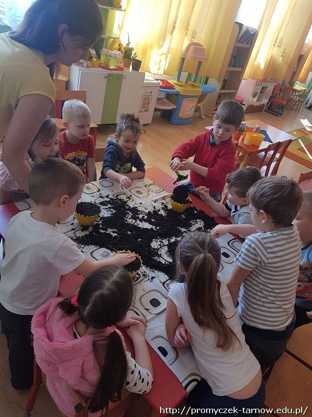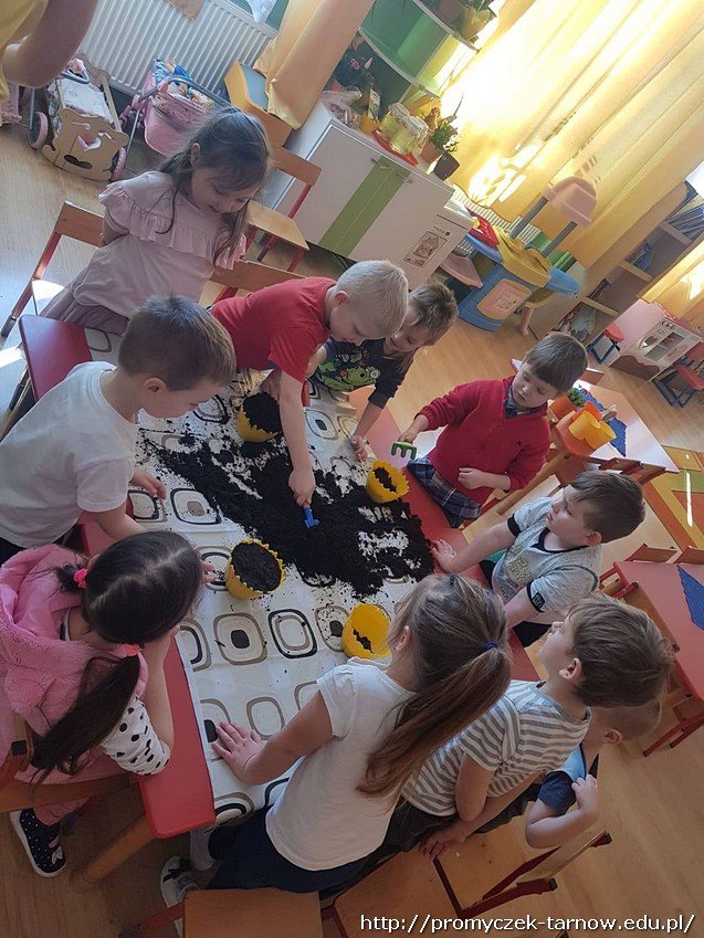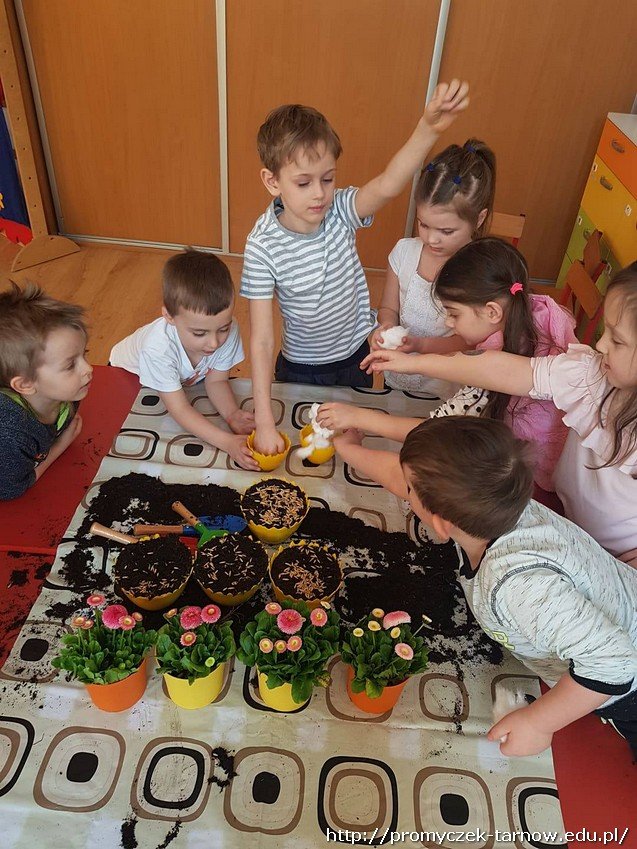 W naszej grupie wiosna rozgościła się na dobre. Przedszkolaki wybrały się na zakupy na pobliski bazarek i zakupiły rozsady kwiatów oraz nasiona. Następnie sala przedszkolna zamieniła się w mały ogródek. Dzieci mogły samodzielnie posadzić kwiaty oraz zasiać nasiona.