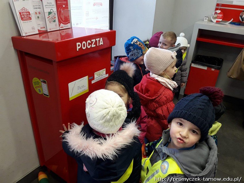 We środę - 20 marca - najmłodsza grupa udała się na Pocztę Polską z bardzo ważną przesyłką do wysłania, a mianowicie z pieniędzmi zebranymi z akcji "Góra Grosza" . Smyki cierpliwie czekały w kolejce do wysłania paczki.