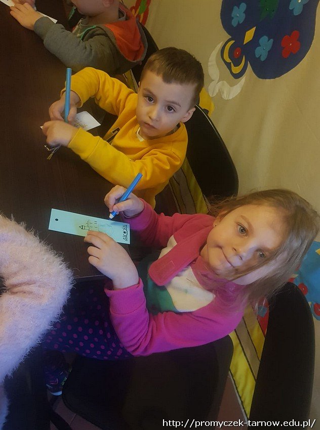Dzieci były niezwykle zainteresowane opowieściami snutymi przez panią prowadzącą, a na zakończenie spotkania wykonały zakładki do książek z wizerunkiem Ratusza.