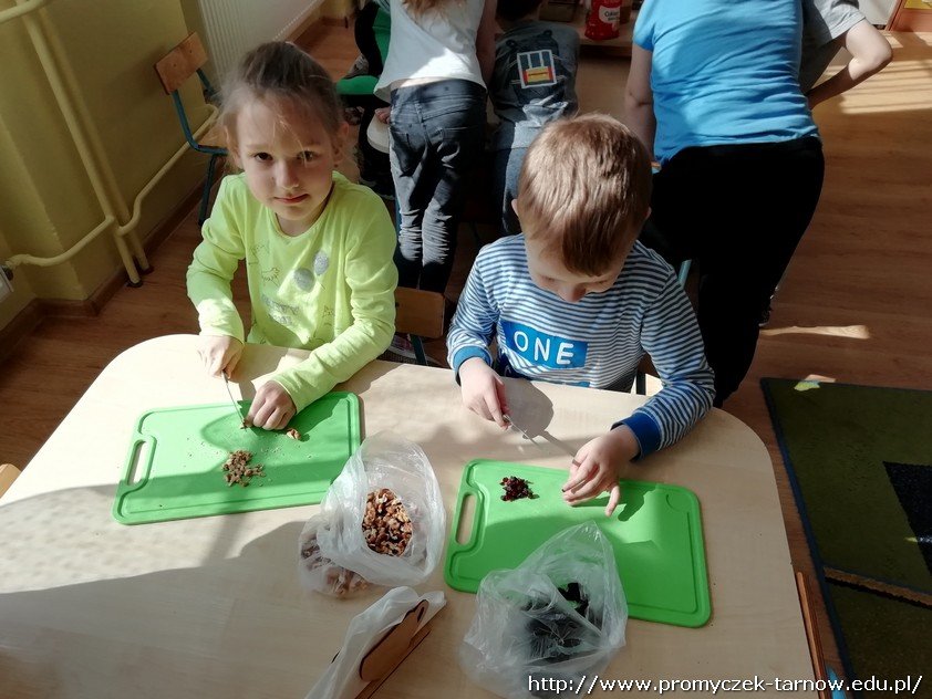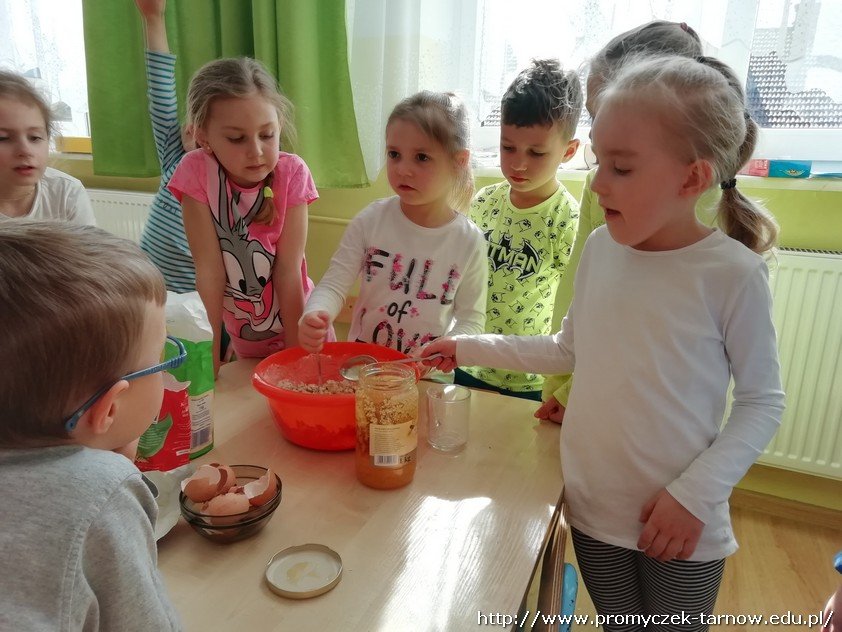 Wybór padł na ciasteczka owsiane z dużą ilością bakalii. Dzieci samodzielnie przygotowały i wymieszały składniki, a także ulepiły ciasteczka. Oczywiście sprzątanie też było na ich głowie. I wiecie co? Poszło im fantastycznie. A ciasteczka okazały się przepyszne!