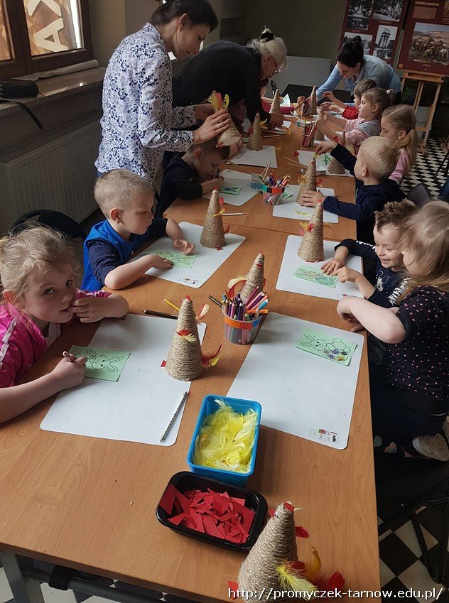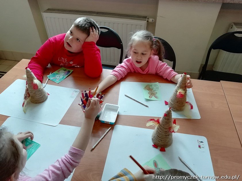 Główną atrakcją było wykonanie kurek wielkanocnych. Przedszkolaki z wielkim zaangażowaniem i radością stworzyły piękne kurki, które z pewnością towarzyszyły im podczas Świąt Wielkanocnych.