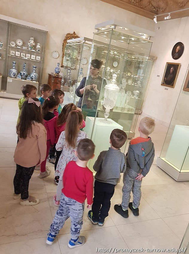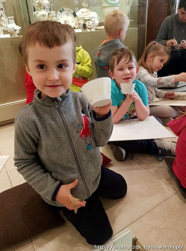 Asy z zainteresowaniem oglądały zbiory w szklanych gablotach, a najbardziej podobały się im kielich przedstawiający 12 miesięcy oraz serwis z poziomkami. Na zakończenie zajęć każdy ozdobił swoją własną kartonową filiżankę.