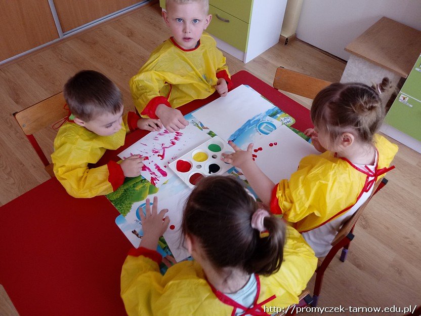 „My muzykanci konszabelanci” … dzieci z grupy Asów przeniosły się w maju do świata muzyki. Poprzez aktywne słuchanie utworów przedszkolaki stworzyły obrazy malowane paluszkami oraz własnoręcznie wykonały grzechotki. Zabawy i radości było przy tym co niemiara. Asom bardzo podobały się zajęcia i z zaangażowaniem tworzyli swoje arcydzieła.