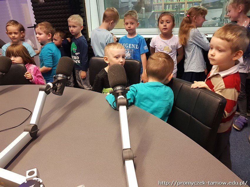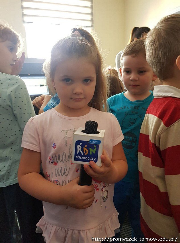 31 maja dzieci z Przedszkola „Promyczek” wybrały się na wycieczkę do RADIA RDN Małopolska. Na miejscu przywitała ich Pani Ewa, która zajmuje się pracą reporterską. Celem wycieczki było zapoznanie dzieci z pracą dziennikarzy radiowych oraz obejrzenie najważniejszych pomieszczeń znajdujących się w radio.