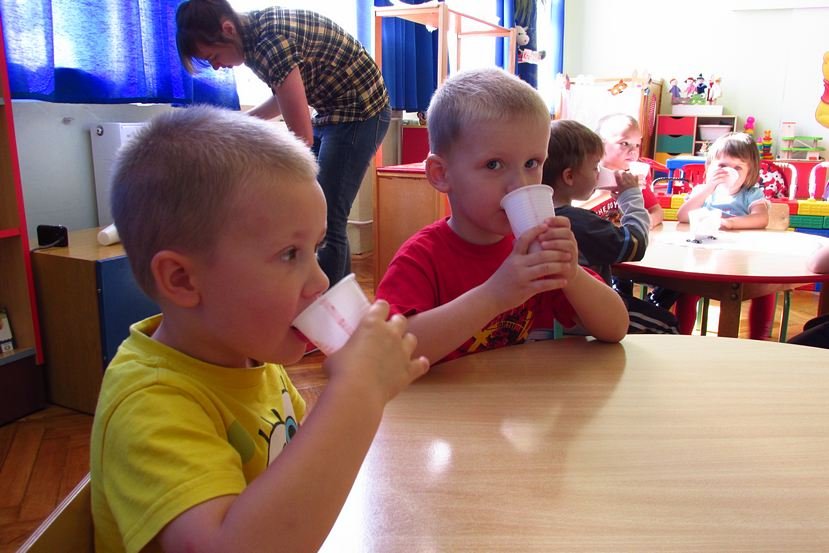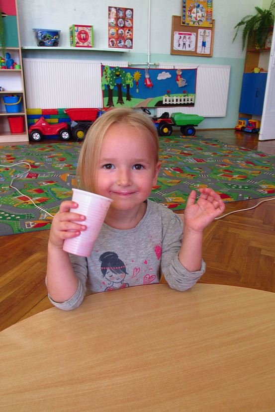 Była to nie tylko świetna, ale również pouczająca zabawa. Każde dziecko miało swój wkład w pracę. Dzięki temu jogurty smakowały najlepiej na świecie! Świadczyć o tym mogą puste dzbanki po jogurcie oraz różowe "wąsy", które pojawiły się na buziach naszych małych Promyczków.