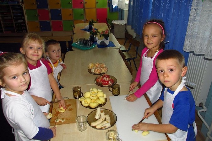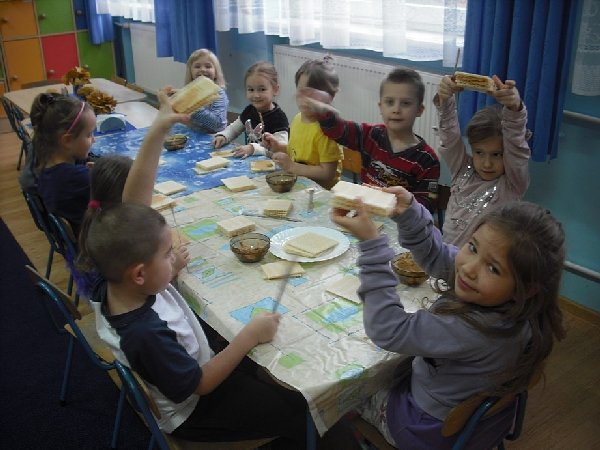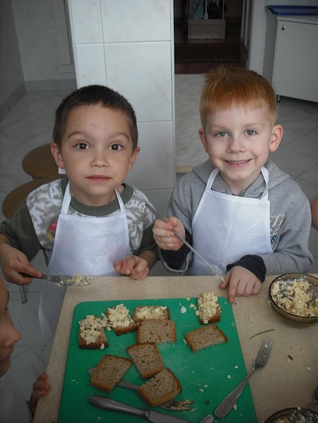 14 listopada 2013 roku kółko kulinarne „Mali Smakosze” realizowało na swoich zajęciach temat „Wesołe i zdrowe kanapeczki”. Na początek wszyscy solidnie przygotowali się do pracy: dzieci przy pomocy pani założyły fartuchy, każdy wybrał sobie miejsce do działania, odbyła się krótka pogadanka na temat bezpieczeństwa i higieny przy wykonywaniu tego typu czynności.