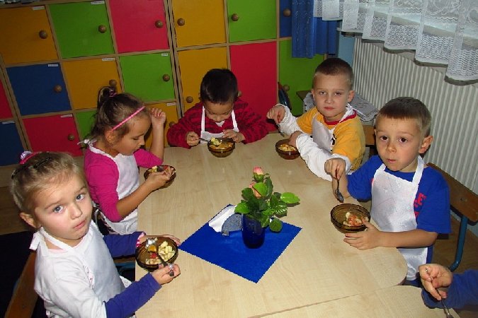Kolejne spotkanie kółka kulinarnego „Mali Smakosze” odbyło się 28 października 2013 roku. Głównym tematem było wykonanie sałatki owocowej. Przygotowywanie potrawy poprzedziła pogadanka na temat zdrowego odżywiania, witamin i ich źródeł. Dzieci wykazały się dużą wiedzą na ten temat i z ochotą przystąpiły do wykonania pysznej sałatki.