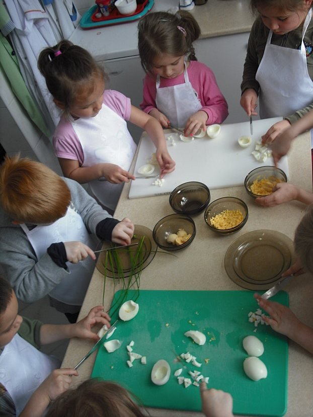 Pani Ula ostatnio bardzo nas wszystkich zaskoczyła, bowiem kółko kulinarne, które zawsze spotyka się we czwartek, tym razem miało zajęcia we środę 19 marca 2014 roku. Okazało się, że czeka nas niezwykle ważne zadanie – przygotowanie poczęstunku dla gości, którzy pojawią się w przedszkolu w związku z Dniami Otwartymi. Zadanie wielce nas ucieszyło, bo lubimy sprawiać radość innym smakoszom dużym i małym, poza tym uwielbiamy wspólne gotowanie.
