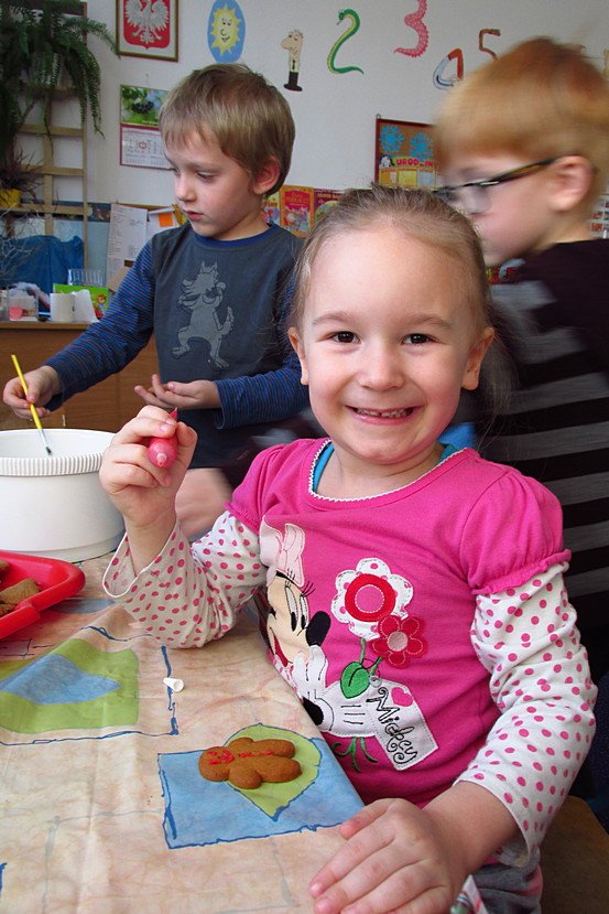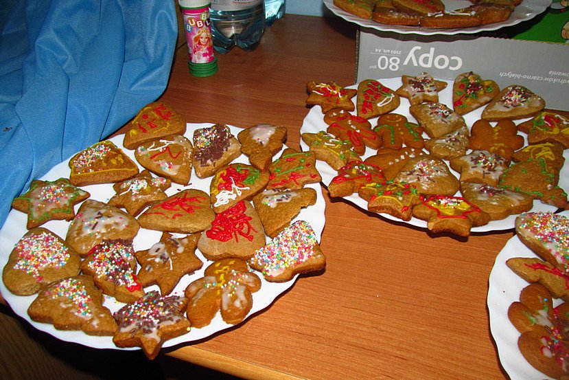 Wszyscy uczestnicy kółka kulinarnego „Mali Smakosze” na spotkaniu, które odbyło się 12 grudnia 2013 roku, mieli szansę na …. dekorowanie pierniczków! Pierniczki zrobiły rano pani Ula i pani Renata, a my mogliśmy na popołudniowych zajęciach zająć się ozdabianiem. Każdy tworzył niepowtarzalne wzory – były uśmiechnięte gwiazdeczki, choinki z kolorowymi łańcuchami, piernikowe ludki ze śmiesznymi guzikami i wiele, wiele innych. Wyobraźnia tego dnia działała u nas na największych obrotach, a smak ciasteczek sprawił, że poczuliśmy atmosferę Świąt.