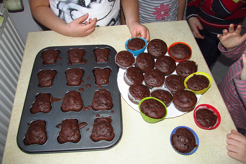 I tu nastąpił najgorszy etap – oczekiwanie, aż babeczki się upieką! Na szczęście potrzebowały tylko 15 minut i po chwili mogliśmy się delektować wspaniałym smakiem. Oczywiście nie zapomnieliśmy o paniach pracujących w przedszkolu i innych dzieciach. Każdy miał 13 marca 2014 roku małą czekoladową przyjemność.