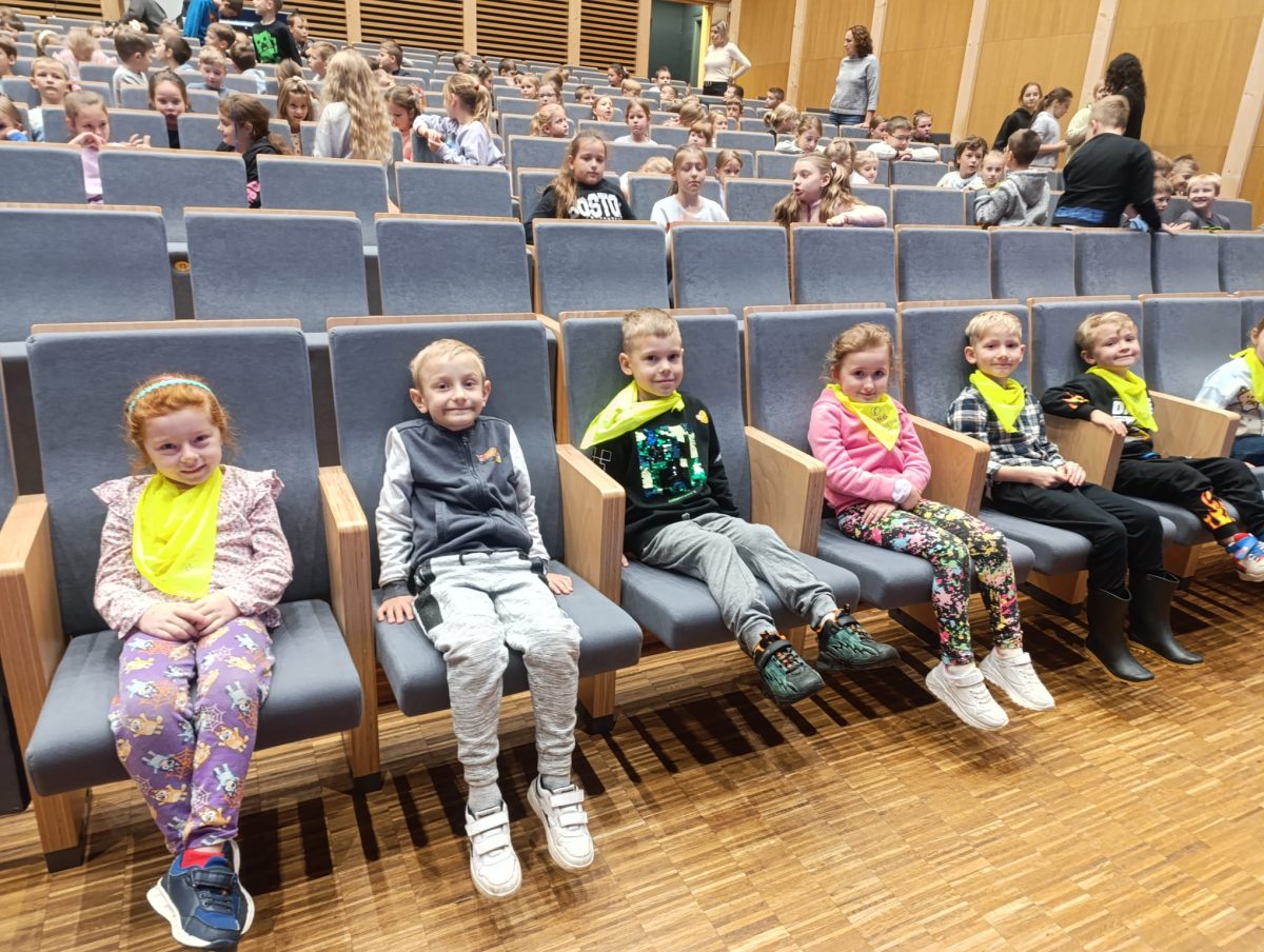 Pomimo deszczowej pogody, w piątek zuchy odwiedziły Szkołę Muzyczną w Tarnowie aby zanurzyć się w Parku Czarów. To własnie tam rodzeństwo trolli – Kruszynka i Zgubek zdają sobie sprawę, że się zgubili się w lesie, tam natrafiają na jaskinię. Zaglądając do środka, są świadkami magicznego eksperymentu. Naukowiec i zły czarodziej troll tworzy w swoim laboratorium trzy złe byty – Lenistwo, Strach i Chciwość – które posłużą mu do zapanowania nad światem. Przedszkolaki przekonały się że do walki ze złem posłużyć może dobre i czyste serce, które zawsze zwycięża. Po skończonym spektaklu dzieci udały się autobusem do przedszkola.