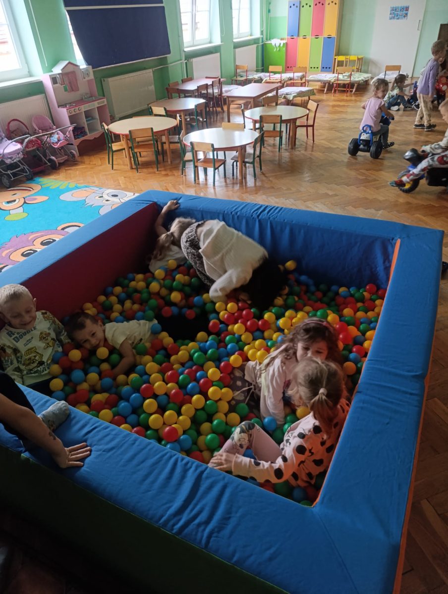Nowy rok przedszkolny rozpoczęliśmy z uśmiechem i energią! W grupie młodszej dzieci poznawały swoje sale, bawiły się wspólnie w kącikach zabaw, a podczas spacerów odkrywały najbliższą okolicę. Nie zabrakło także radości podczas zabaw w basenie z kulkami, które zawsze wywołują mnóstwo śmiechu.