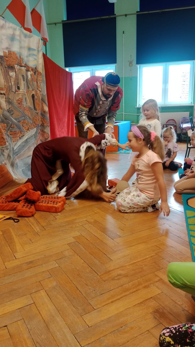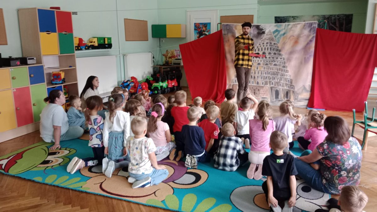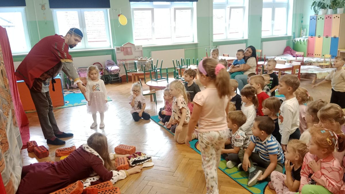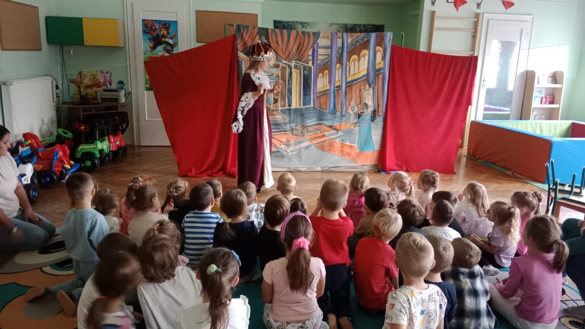 W środę po raz pierwszy w tym roku gościliśmy teatrzyk Eden. Tym razem z przedstawieniem o zarozumiałej królowej, która była przekonana o własnej nieomylności. Władczyni wydaje się, że nie ma istoty mądrzejszej i piękniejszej od niej , a na dowód swojej wielkości rozkazuje wybudować wieżę, która sięgnie aż do nieba. Oddany służący Jan, zaniepokojony jej zachowaniem, poszukuje pomocy u miejscowej lekarki. Tylko czy na to, co dolega królowej istnieje lekarstwo? Co takiego musi się wydarzyć, żeby zrozumiała, że nie należy się zachowywać jak „pępek świata”? Wszystkim bardzo spodobało się przedstawienie, dziękujemy i zapraszamy ponownie!