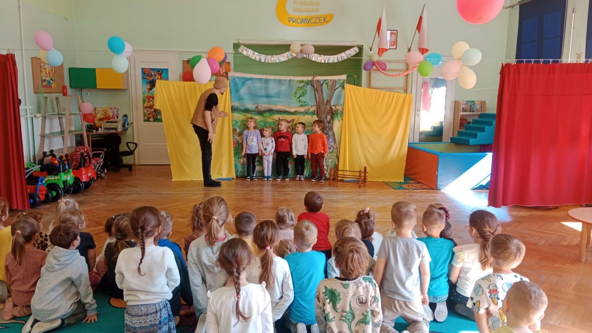 18 marca nasze przedszkole odwiedził Teatrzyk Eden z Wieliczki. Tematem przestawienia był ” Odważny pasterz”.Jest to historia pasterza Dawida, który pomimo swojego młodego wieku stanie przed wielkimi wyzwaniami. Sprostać im będzie mógł tylko z pomocą widzów, którzy będą mieli szansę wykazać się odwagą i pomysłowością, by uratować owieczki przed niebezpieczeństwem.