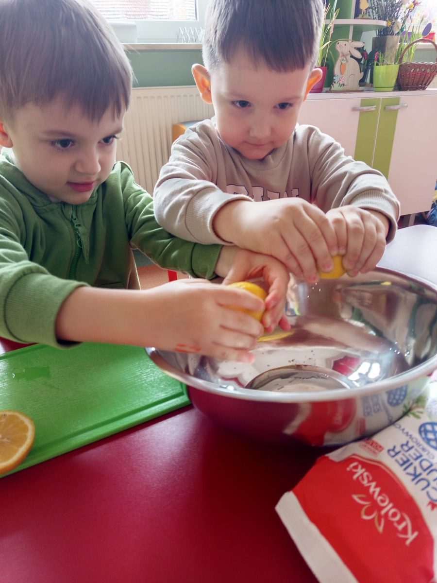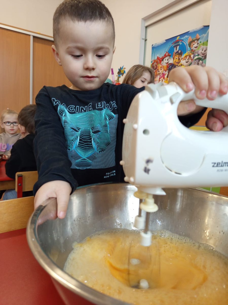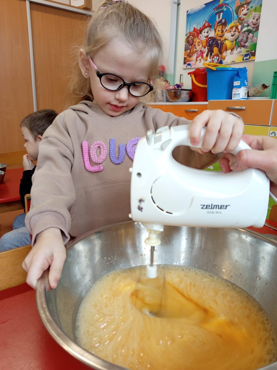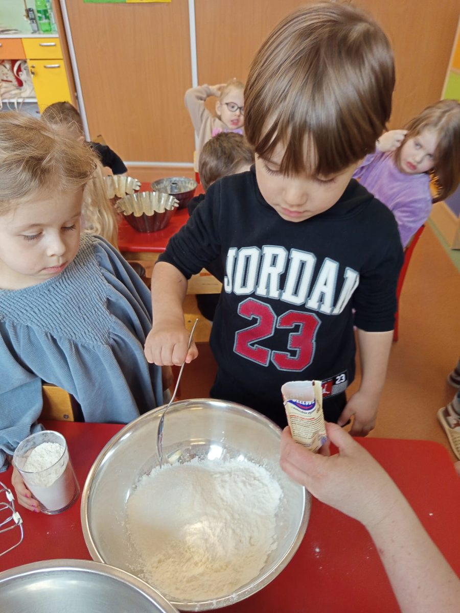 Szczególnie dużo radości sprawiły zajęcia kulinarne w młodszej grupie. Dzieci z zapałem przygotowywały świąteczne wypieki, ucząc się współpracy i rozwijając swoje umiejętności praktyczne.